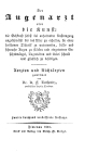 Der Augenarzt oder die Kunst : die Sehkraft selbst bei anhaltender Anstrengung ungeschwacht bis ins Alter zu erhalten, sie einer heilsamen Diatetik zu unterwerfen, blode und schwache Augen zu starken und eingetretene Gesichtsmangel, Augenleiden und Uebel schnell und glucklich zu beseitigen /Aertzen und Richarzten gewidmet von K. F. Lutheritz; 2. durchaus verbesserte Auflage