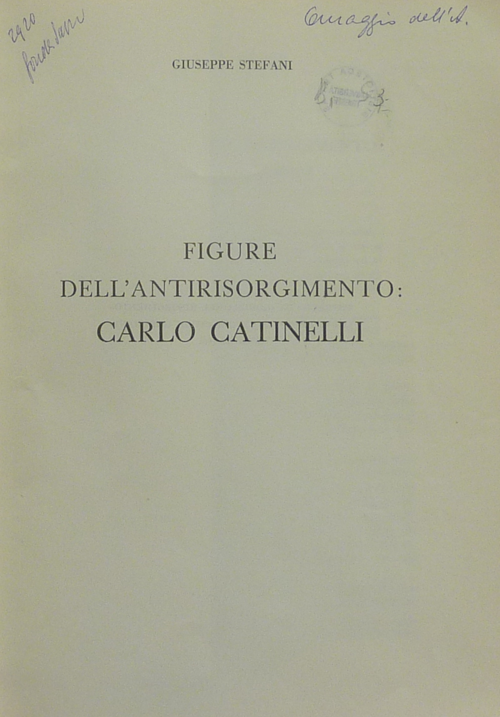 *Figure dell'antirisorgimento : Carlo Catinelli / Giuseppe Stefani. - Gorizia, 1961. - 46 p. ; 24 cm. ((Estr. da: Gorizia nel Risorgimento, 4. suppl. a Studi goriziani, 1961