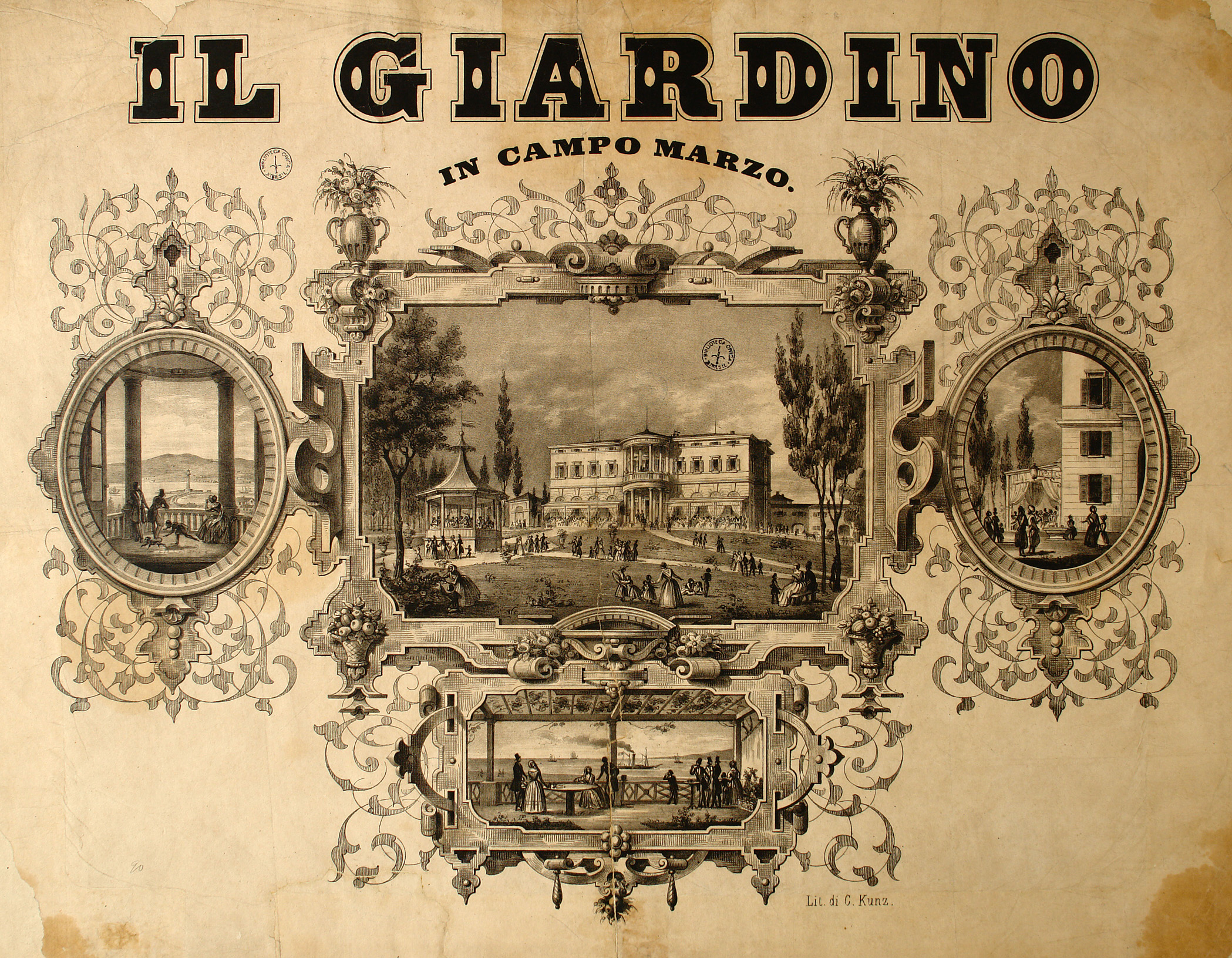 Il *giardino in Campo Marzo / lit. di C. Kunz. - [Trieste : lit. Kunz, ca.1880]. - 1 stampa : lit. ; foglio 510x650 mm.