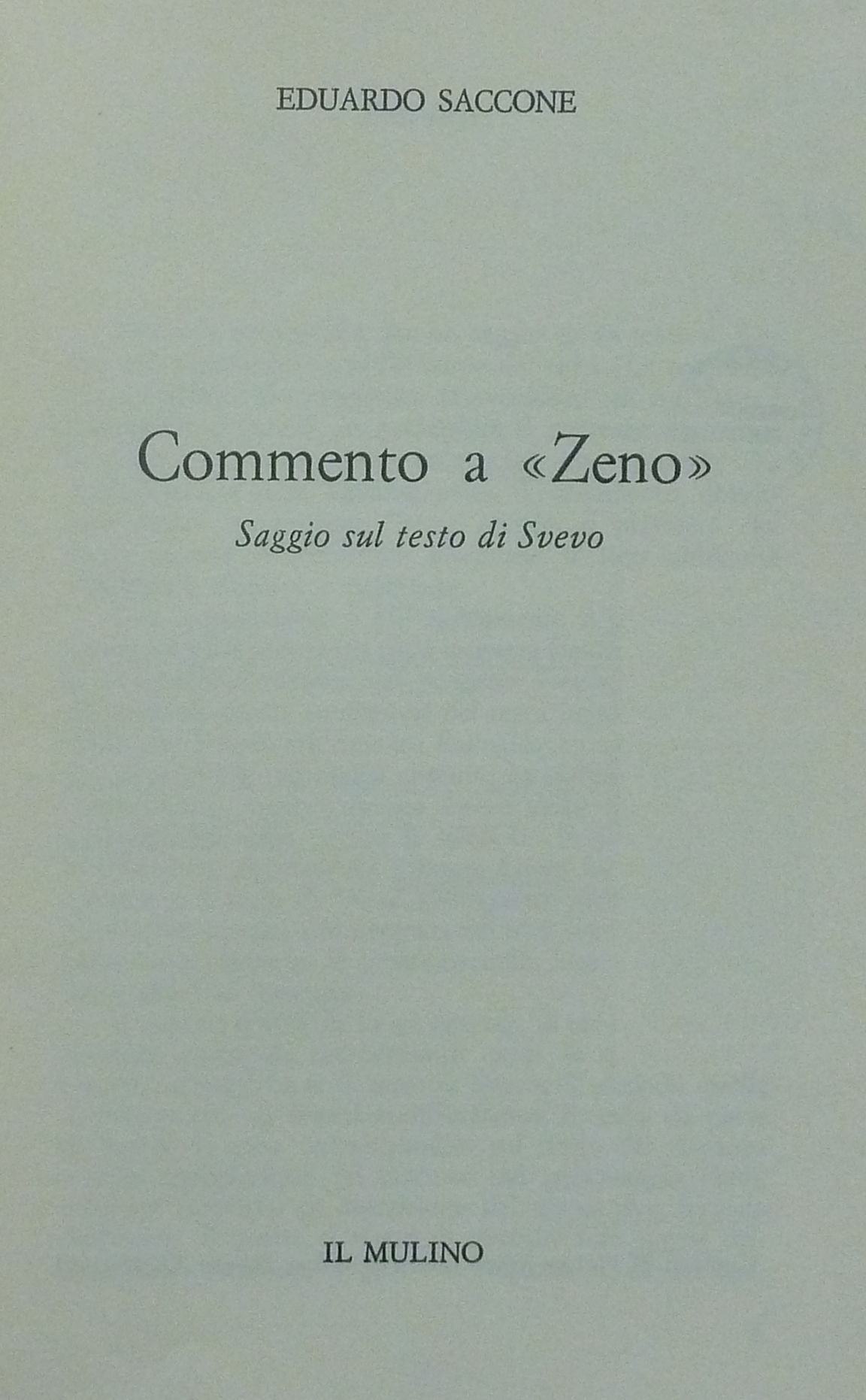*Commento a Zeno : saggio sul testo di Svevo / Eduardo Saccone. - Bologna : Il mulino, ©1973. - 223 p. ; 22 cm