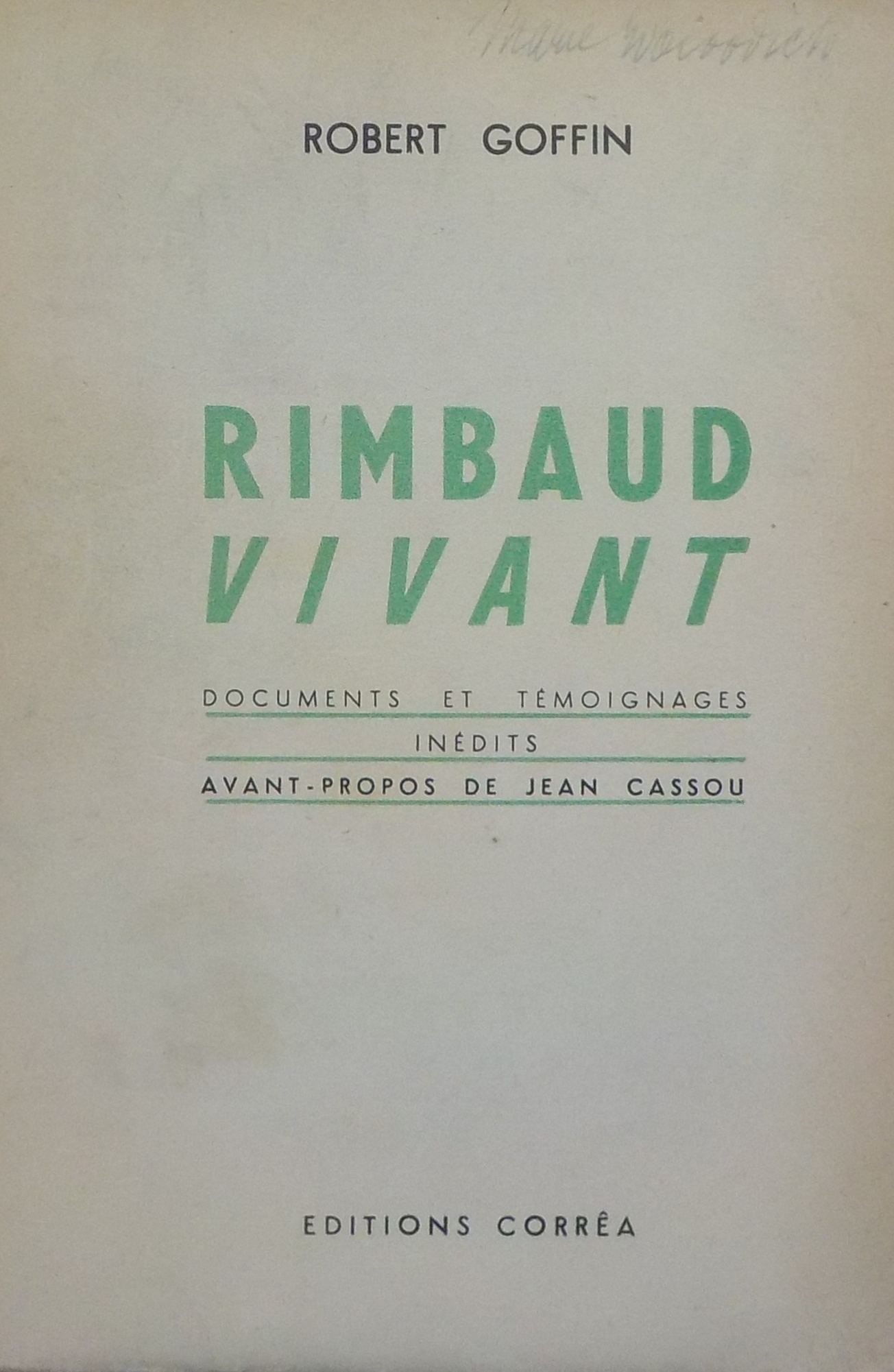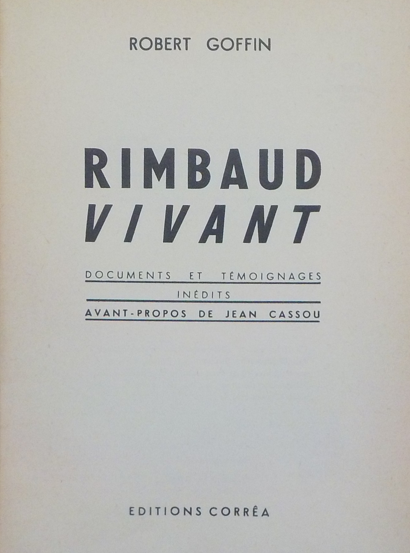 *Rimbaud vivant : documents et temoignages inedits / Robert Goffin ; avant-propos de Jean Cassou. - Paris : Correa, stampa 1937. - 230 p. ; 20 cm.