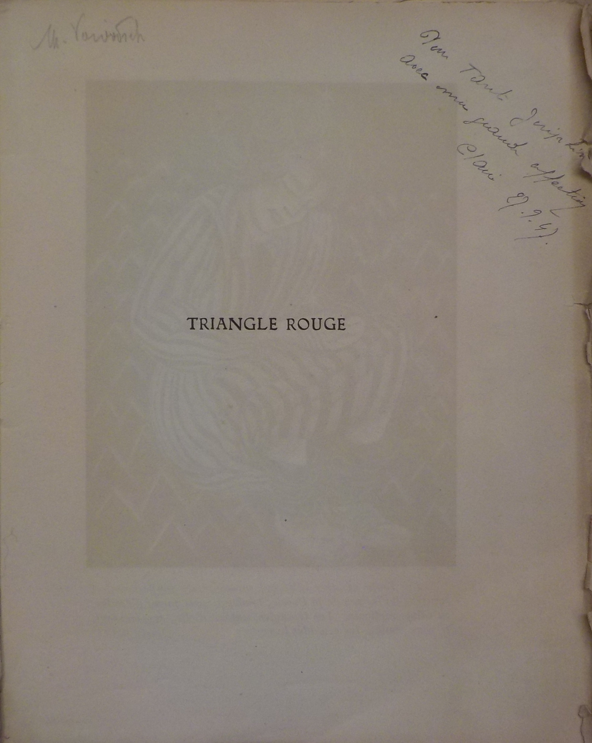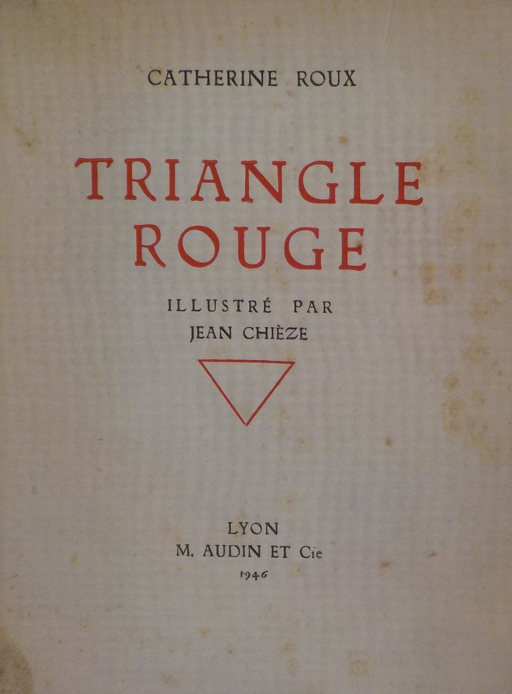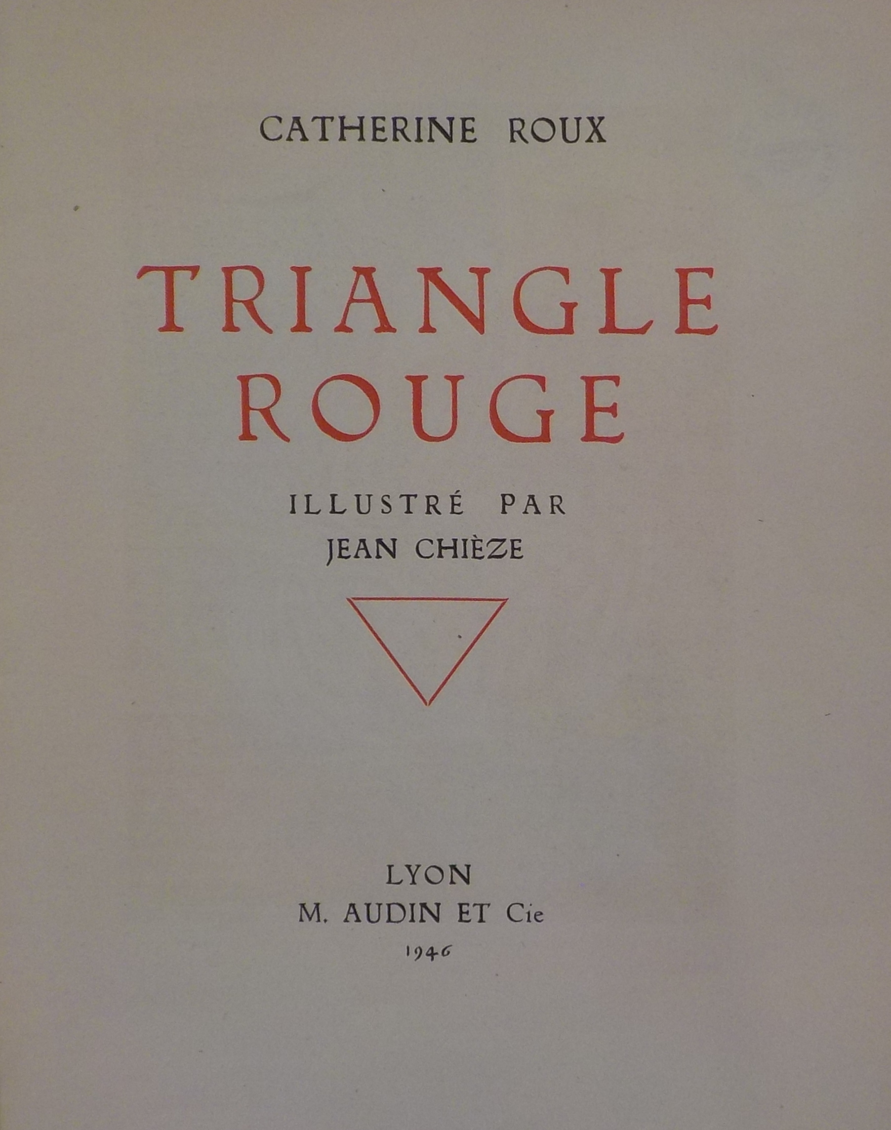 *Triangle rouge / Catherine Roux ; illustré par Jean Chièze. - Lyon : M. Audin, 1946. - 230 p. : ill. ; 24 cm.