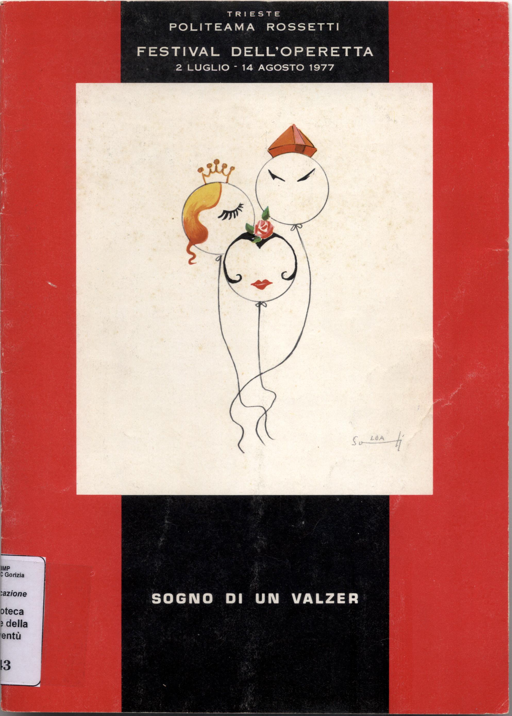 *Sogno di un valzer : operetta in tre atti / F. Doermann e L. Jacobson ; musica di Oscar Straus ; regia Giulio Chazalettes ; costumi: Sebastiano Soldati ; maestro concertatore e direttore Hans Walter Kämpfel. - [Trieste] : [Mosetti], [1977]. - [6] carte : ill. ; 24 cm. ((In cop.: Trieste, Politeama Rossetti - Festival dell'operetta, 2 luglio-14 agosto 1977. - Copertina firmata da Sebastiano Soldati. - Nota di Mario Nordio e figurini di Sebastiano Soldati