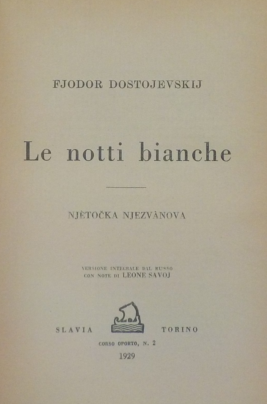 Le *notti bianche ; Njetocka Njezvanova / Fjodor Dostojevskij ; versione integrale dal russo con note di Leone Savoj. - Torino : Slavia, 1929. - 311 p. ; 20 cm.