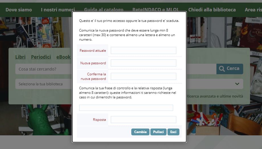 - I diritti dell’utente sono scaduti: generalmente l’utente viene abilitato ai servizi per un periodo di prestito, che può coincidere per es. con l’anno solare; se non si reca in biblioteca una volta scaduta l’abilitazione periodica, non potrà accedere ai servizi on line.