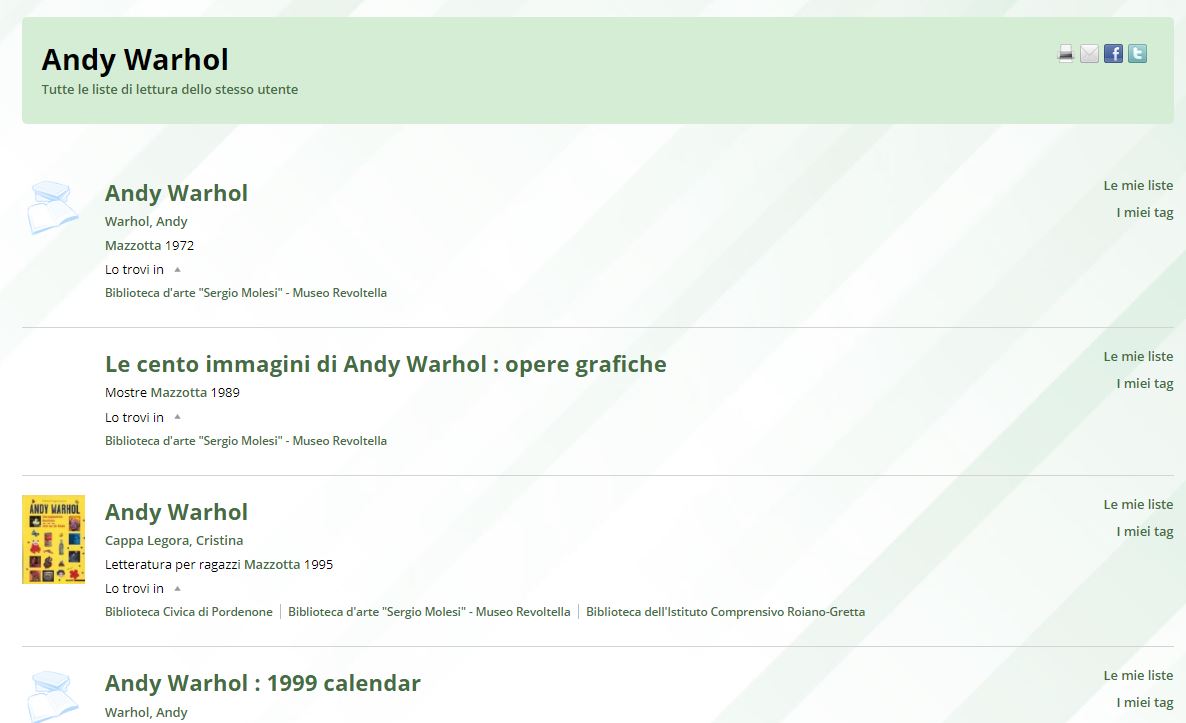 L'elenco delle bibliografie create dall'utente, private o pubbliche, è visibile nel suo Spazio Personale.