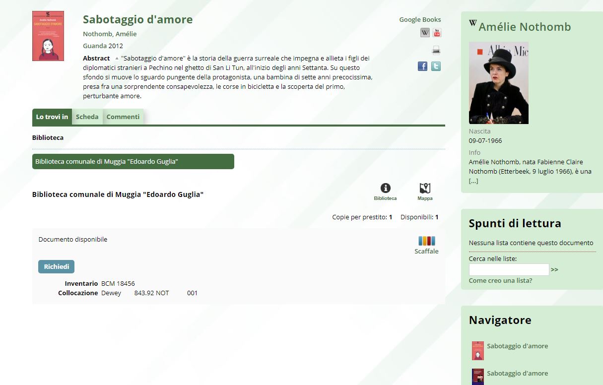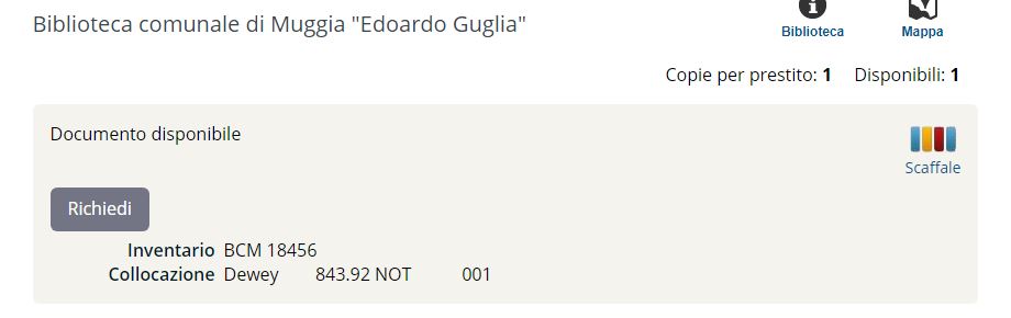 - Documento ammesso / non ammesso al prestito. E' possibile che la biblioteca non aderisca al prestito informatizzato, quindi è consigliabile verificare in biblioteca l'effettiva disponibilità del documento.