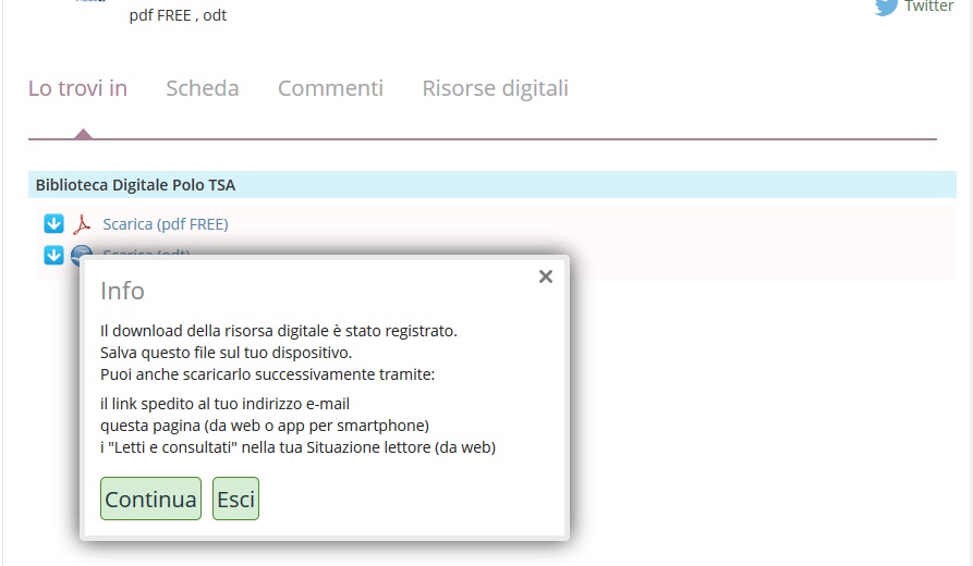 Cliccando su CONTINUA si avrà accesso alla risorsa