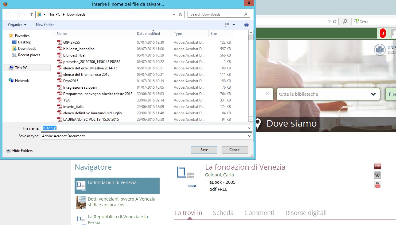 - Il documento non è disponibile nella biblioteca scelta; in questo caso, il sistema proporrà copia analoga del documento, se presente in un’altra biblioteca: