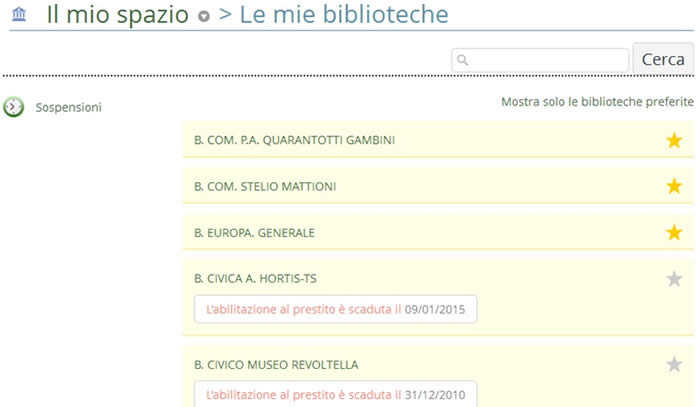 - I diritti dell’utente sono sospesi: questo avviene quando l’utente è stato sospeso dal servizio, per es. per un ritardo nella consegna di documenti in quella biblioteca o nel gruppo di biblioteche di cui fa parte.