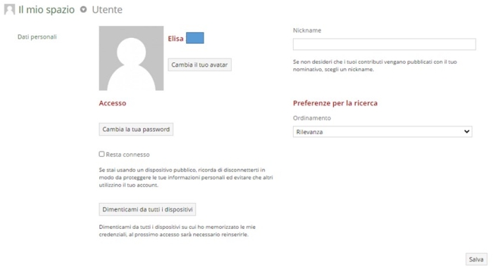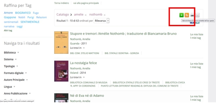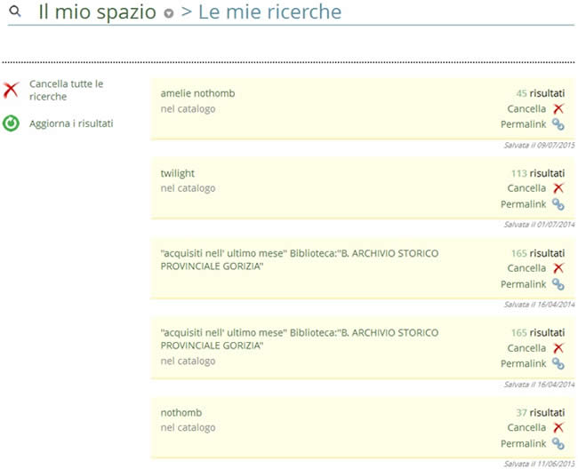 La ricerca verrà salvata automaticamente e la si troverà nel MIO SPAZIO – LE MIE RICERCHE