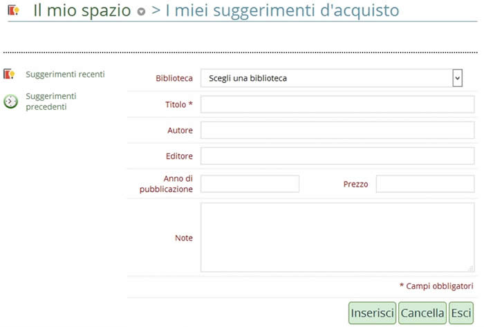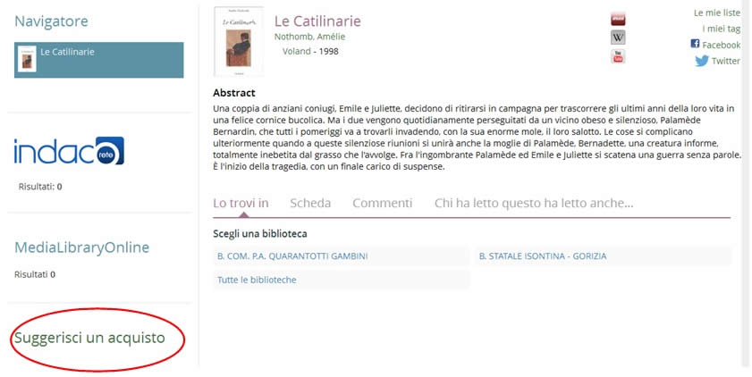 Per suggerire un acquisto l'utente ha due possibilità. A partire dal box SUGGERISCI UN ACQUISTO, che si apre a destra dopo aver effettuato una ricerca,