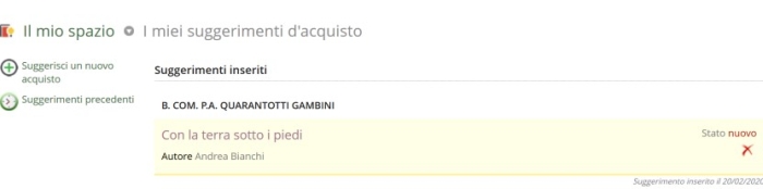 Le richieste d'acquisto rimarranno visibili nel proprio spazio lettore, da dove sarà possibile cancellarle.