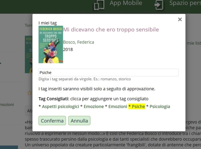 Cliccando su I MIEI TAG sarà possibile inserire una o più parole libere che saranno poi ricercabili in catalogo qualche giorno dopo l'inserimento.