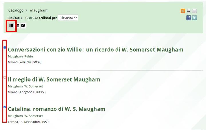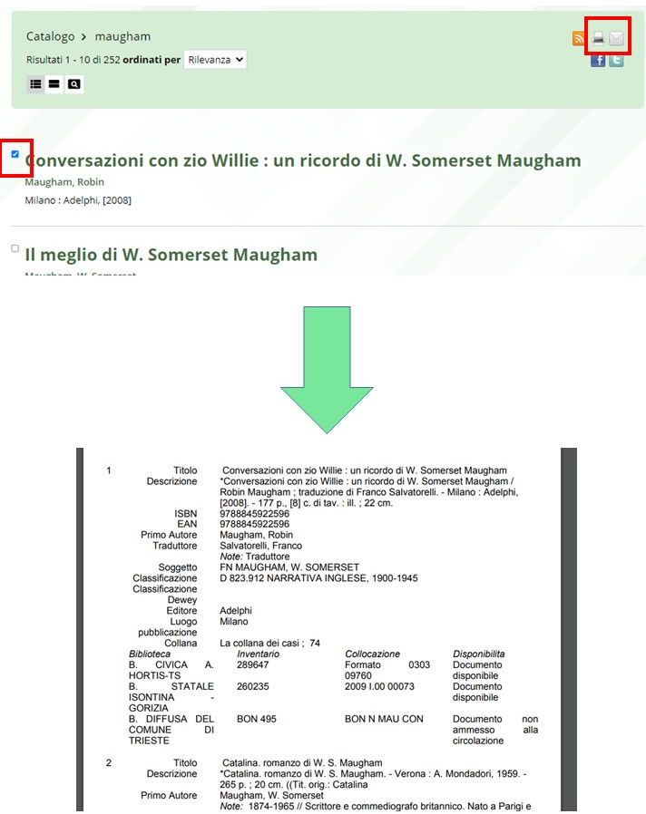 Per stampare i titoli scelti è necessario, dopo averli selezionati, cliccare sulla stampa