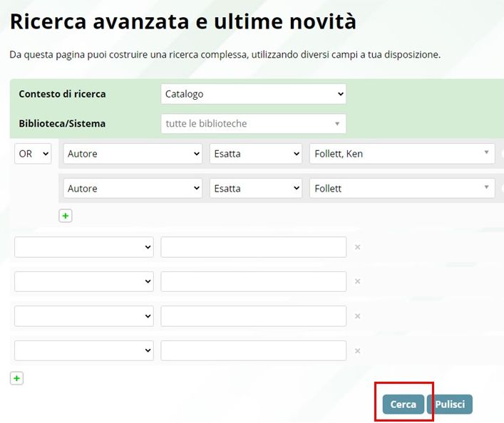 Gli operatori booleani consentono di combinare più termini di ricerca attraverso operatori logici. Nella ricerca a catalogo è possibile utilizzare come operatori booleani AND, OR e NOT.