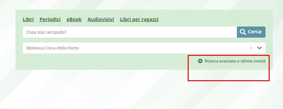 Se i risultati di una ricerca dovessero essere comunque troppi, o si volessero immettere criteri di ricerca più specifici, è possibile effettuare una ricerca avanzata, cliccando sulla voce accanto al tasto CERCA.