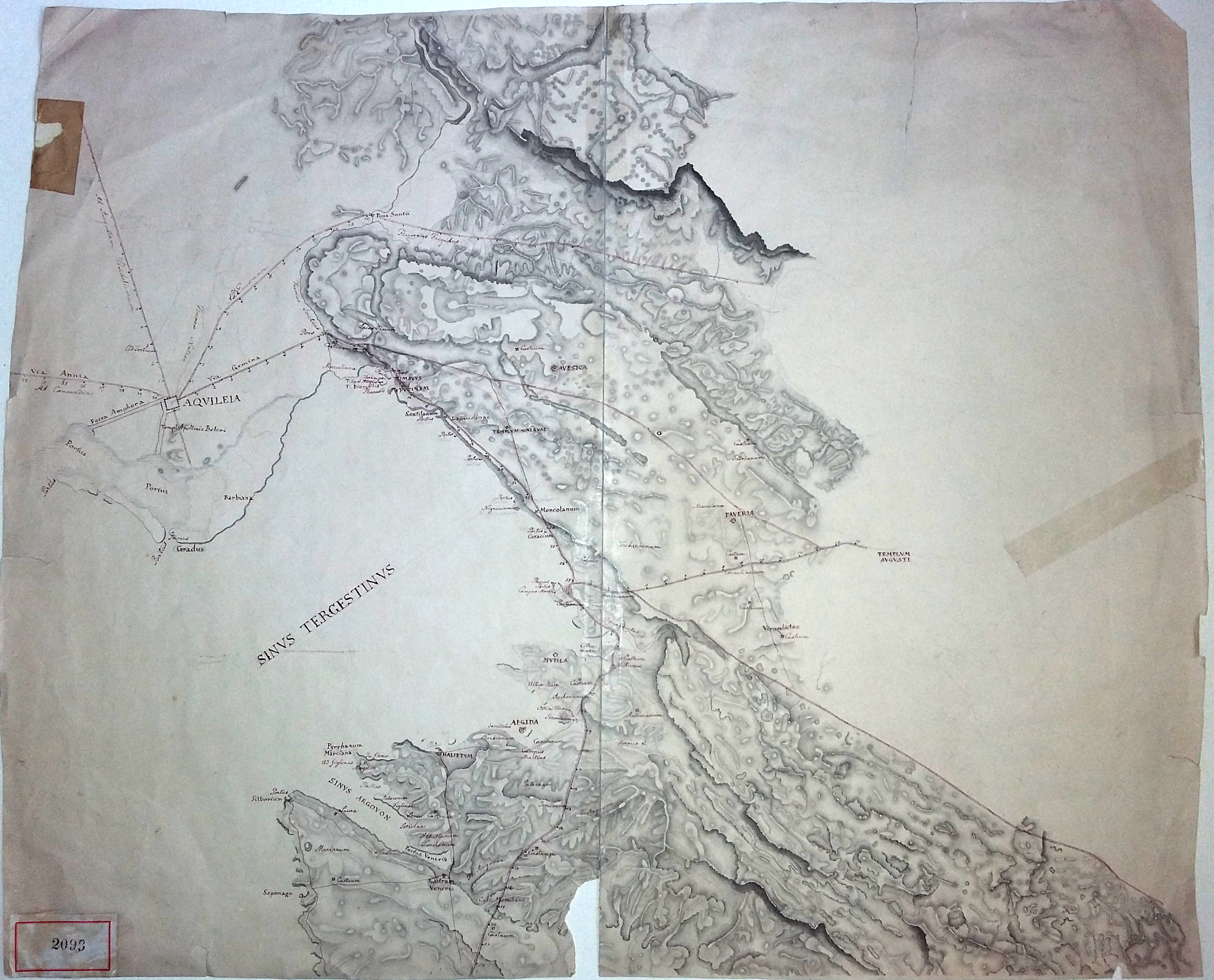 *Sinus Tergestinus / [Pietro Kandler]. - [Scala circa 1:157 500]. - [Trieste] : [s.n.], [prima del 1872]. - 1 carta : disegno, color. ; 51 x 64 cm ((Carta del Golfo di Trieste da Aquileia a Umago all'epoca dell'Impero romano, con indicazione delle strade, delle fortificazioni, dei porti e degli acquedotti.