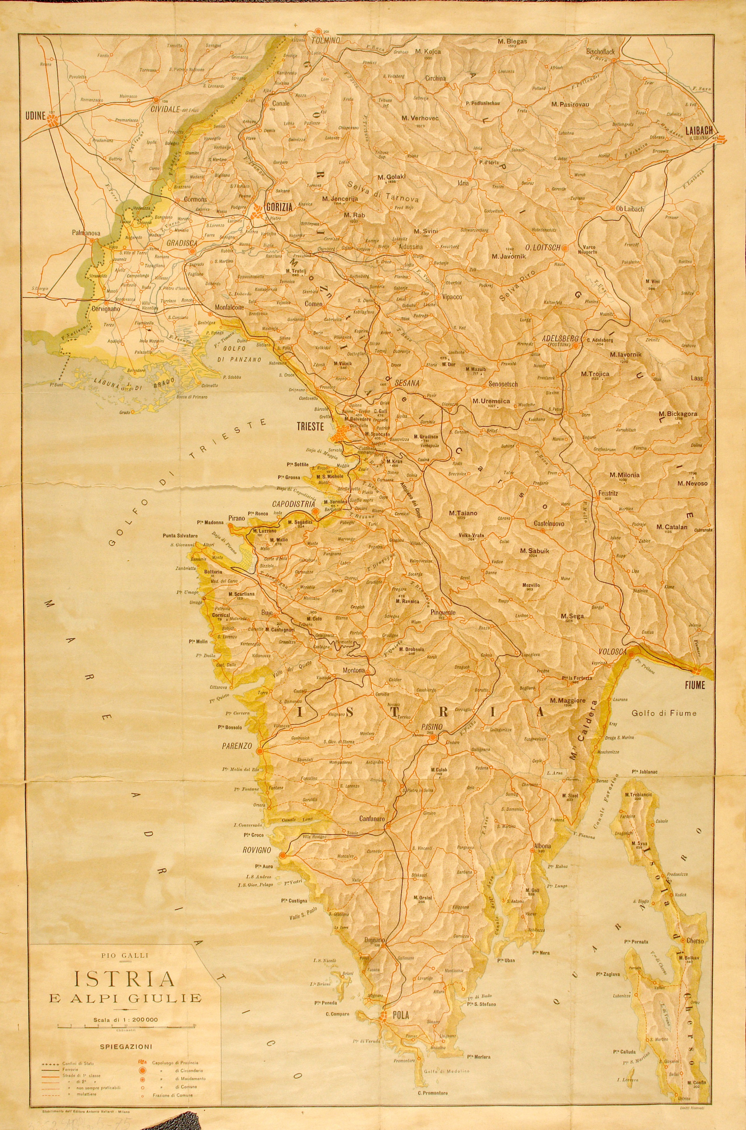 *Istria e Alpi Giulie / Pio Galli. - Scala 1:200.000. - Milano : A. Vallardi, [1915?]. - 1 c. geogr. : color. ; 79x51 cm su foglio 84x56 cm.