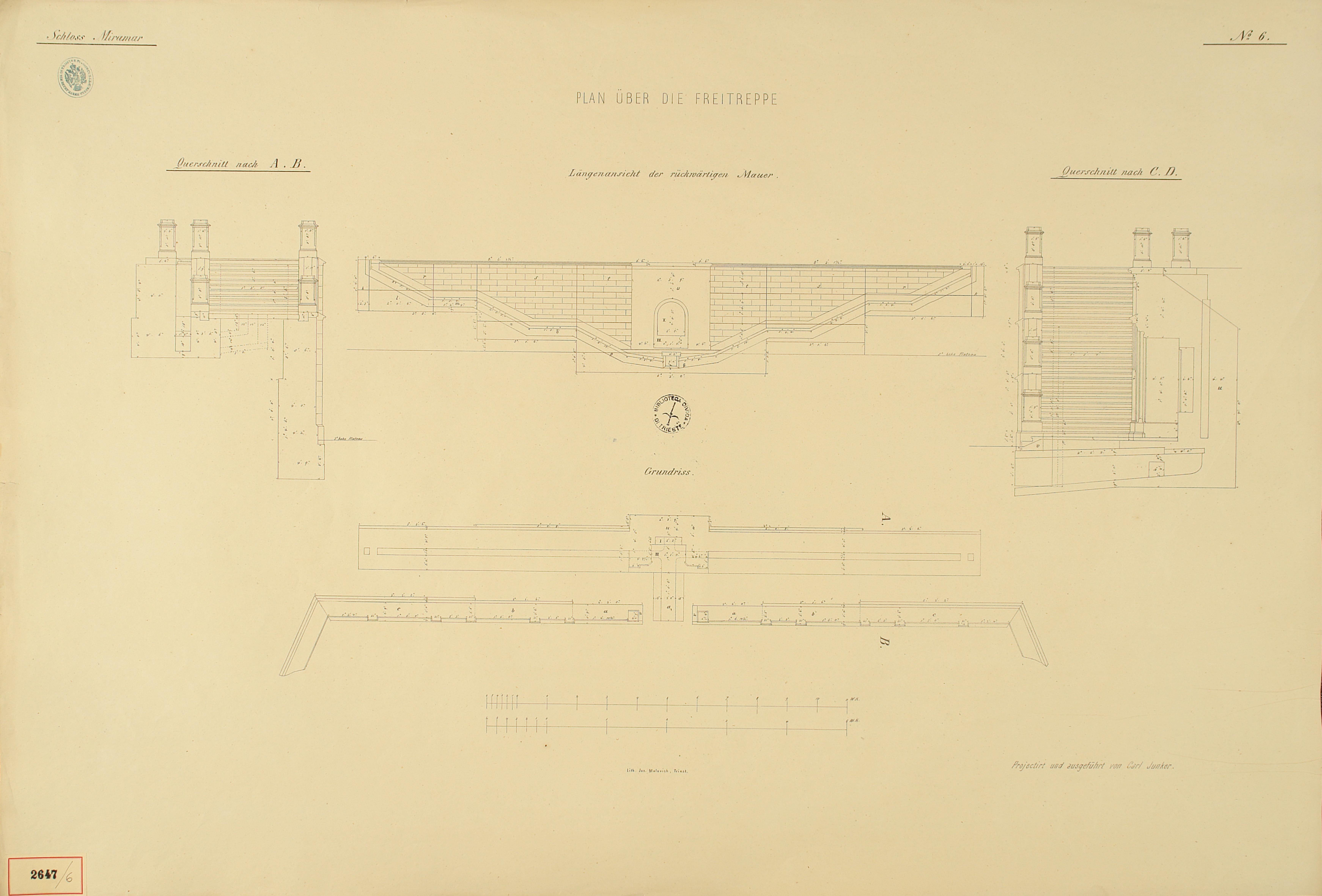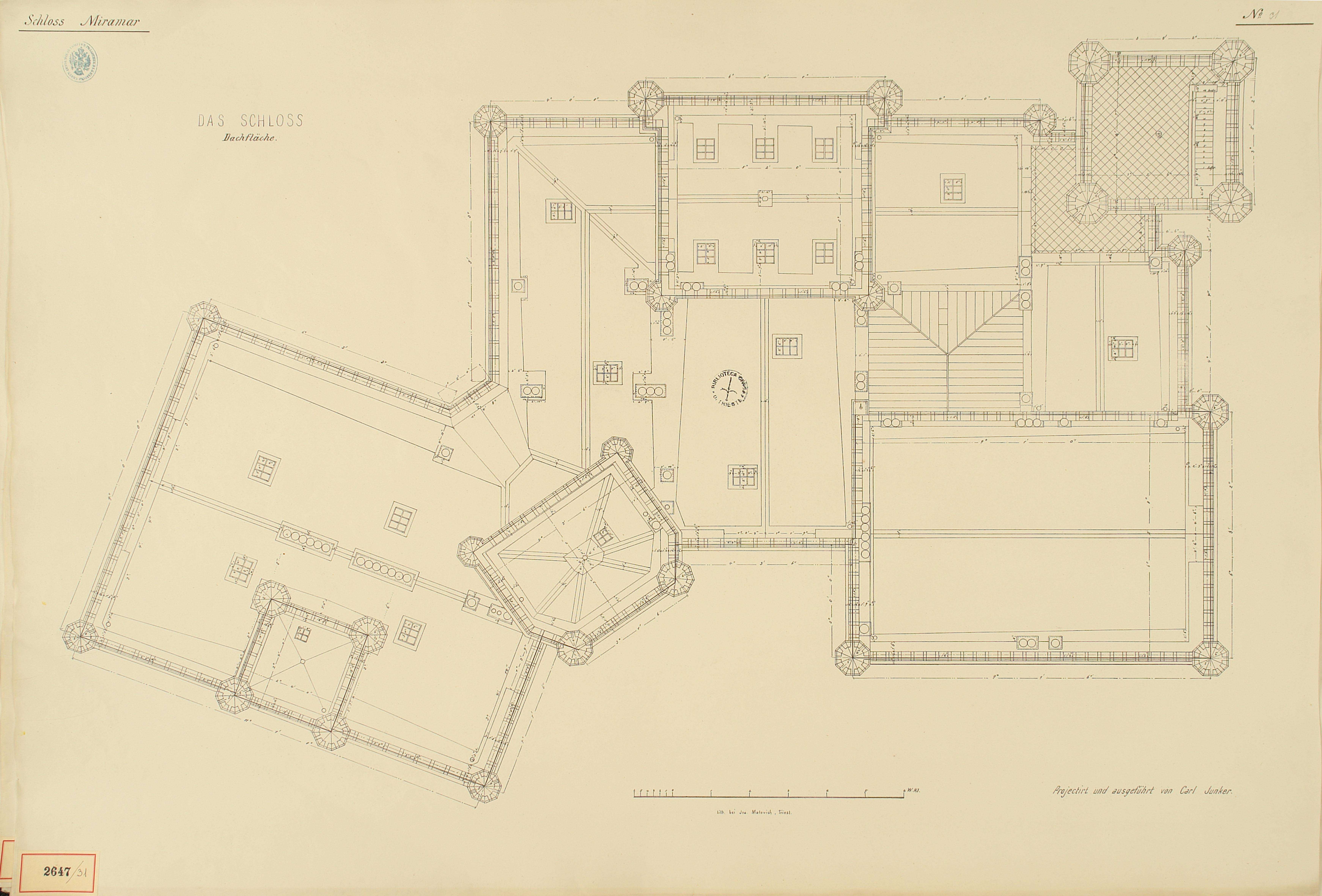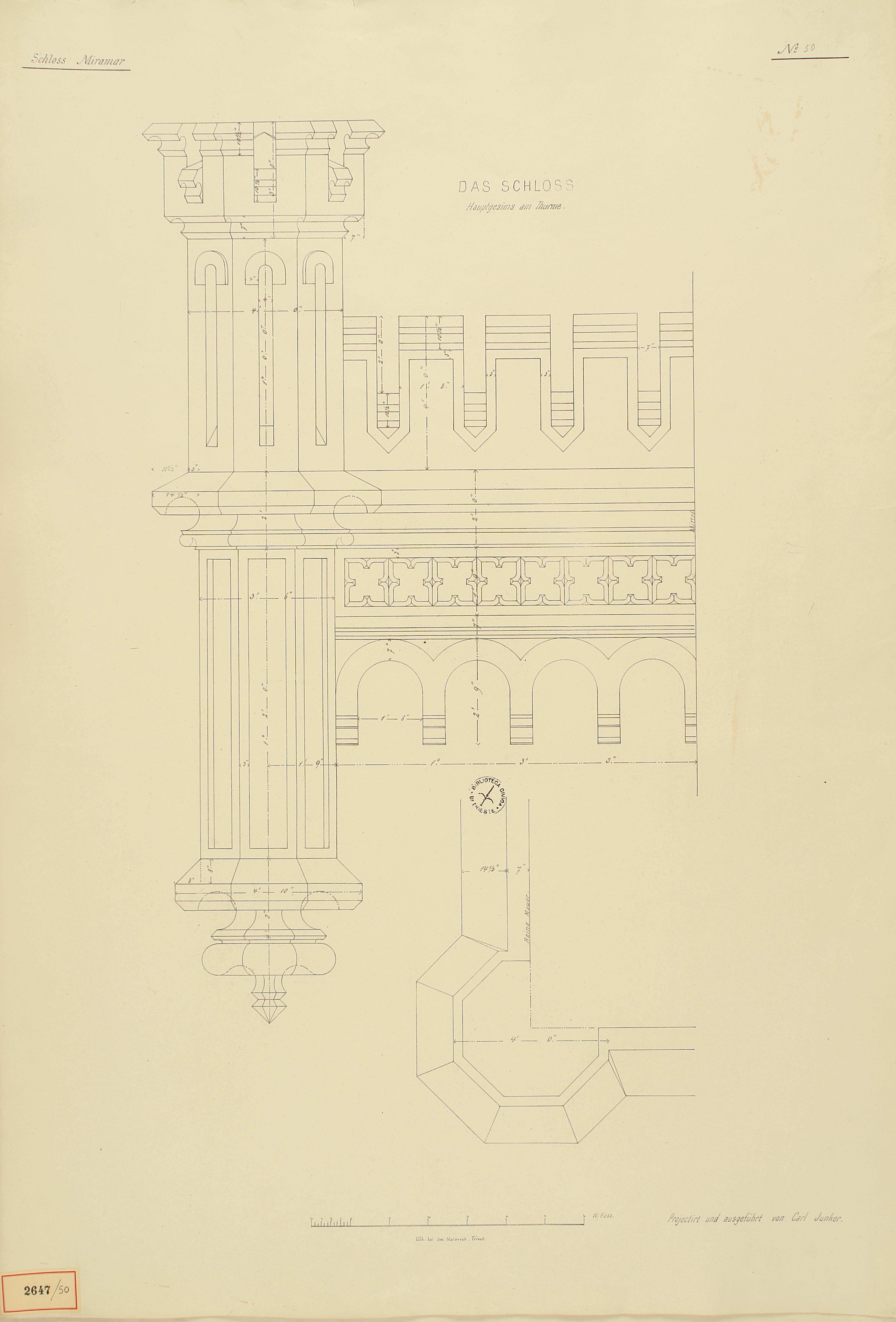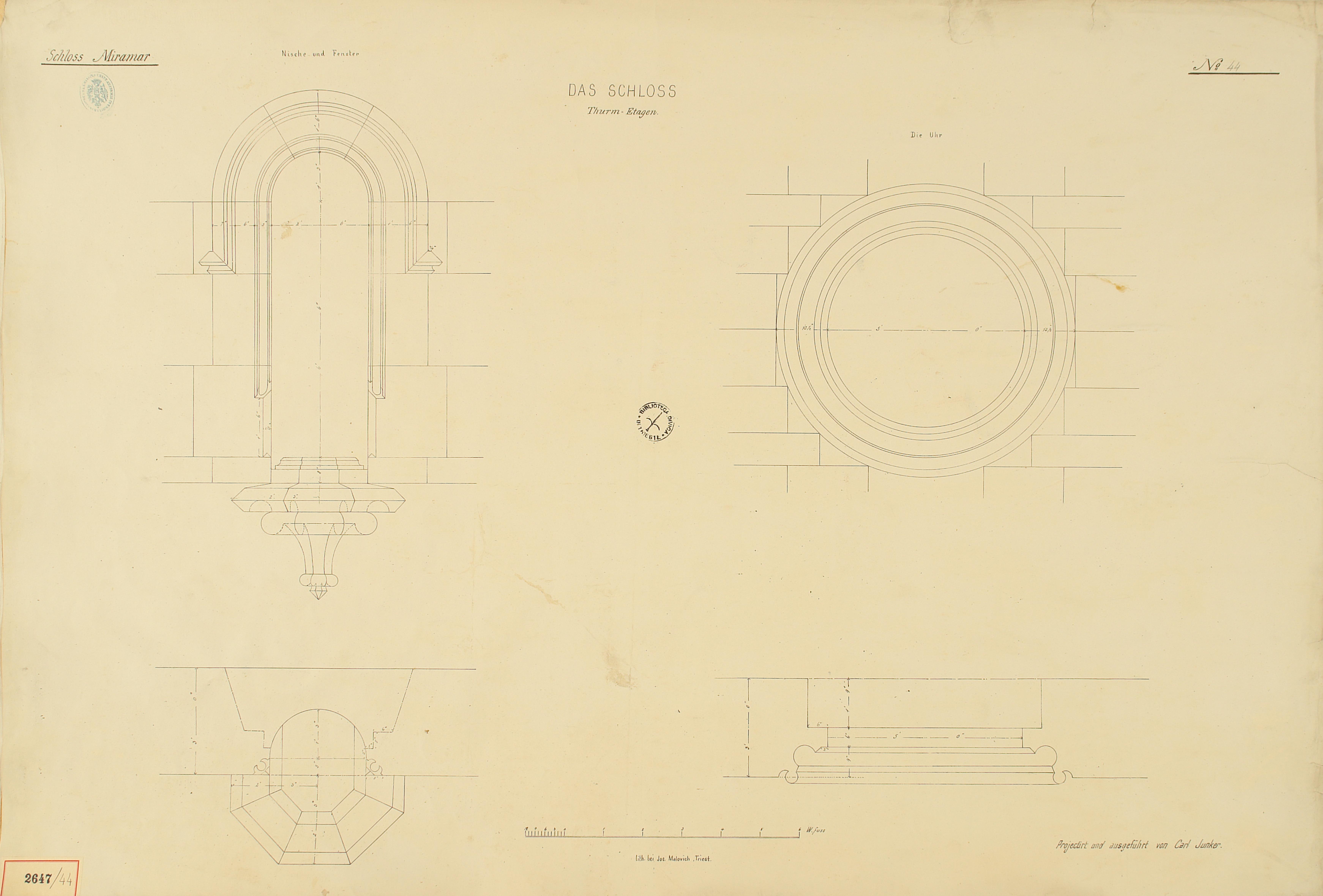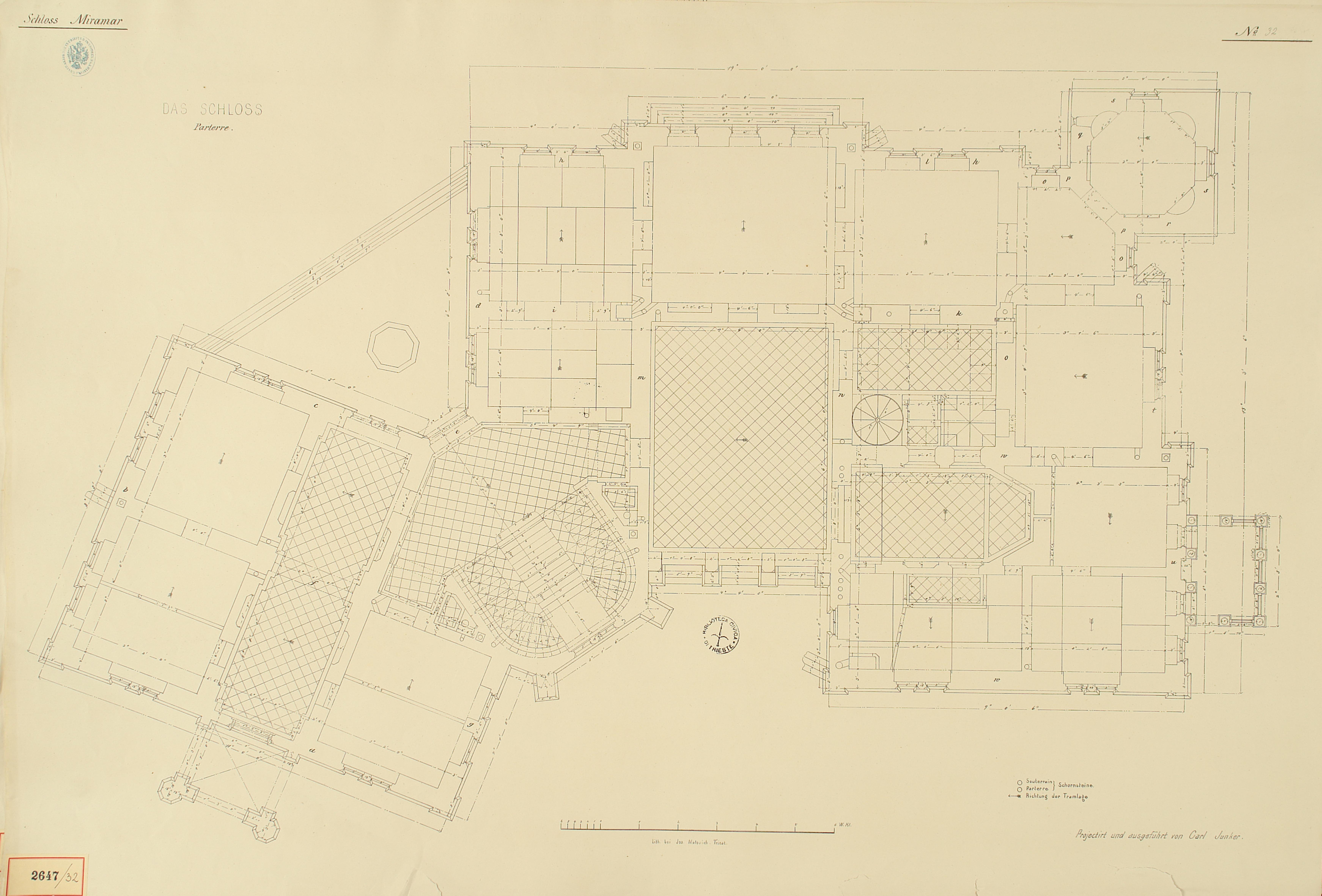 *Schloss Miramar : Im hohen Auftrage seiner k. k. Hoheit des durchlauchtigsten Herrn Erzherzogs Ferdinand Max / Im Zeitraume vom 1. März 1856 bis 27. July 1860, projectirt und ausgeführt von Carl Junker. - Trieste : lith. bei Jos. Malovich, 1856-1860. - 54 tav., 1 pianta e 1 frontespizio : lit. ; 61x90 cm le tav. e 103x142 cm la pianta. ((Tit. della pianta: Situation der Bau- und Garten-Anlagen in Miramar.