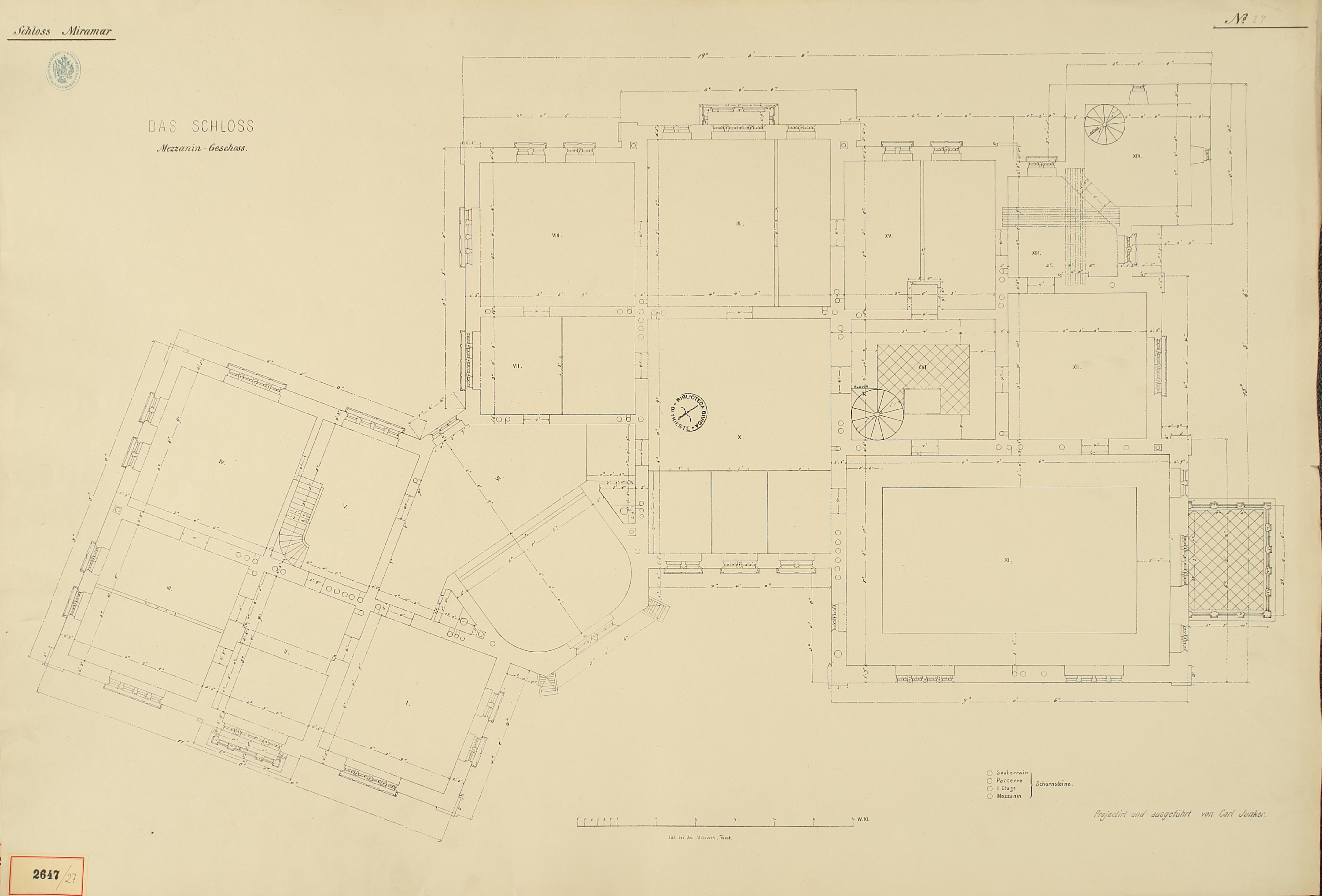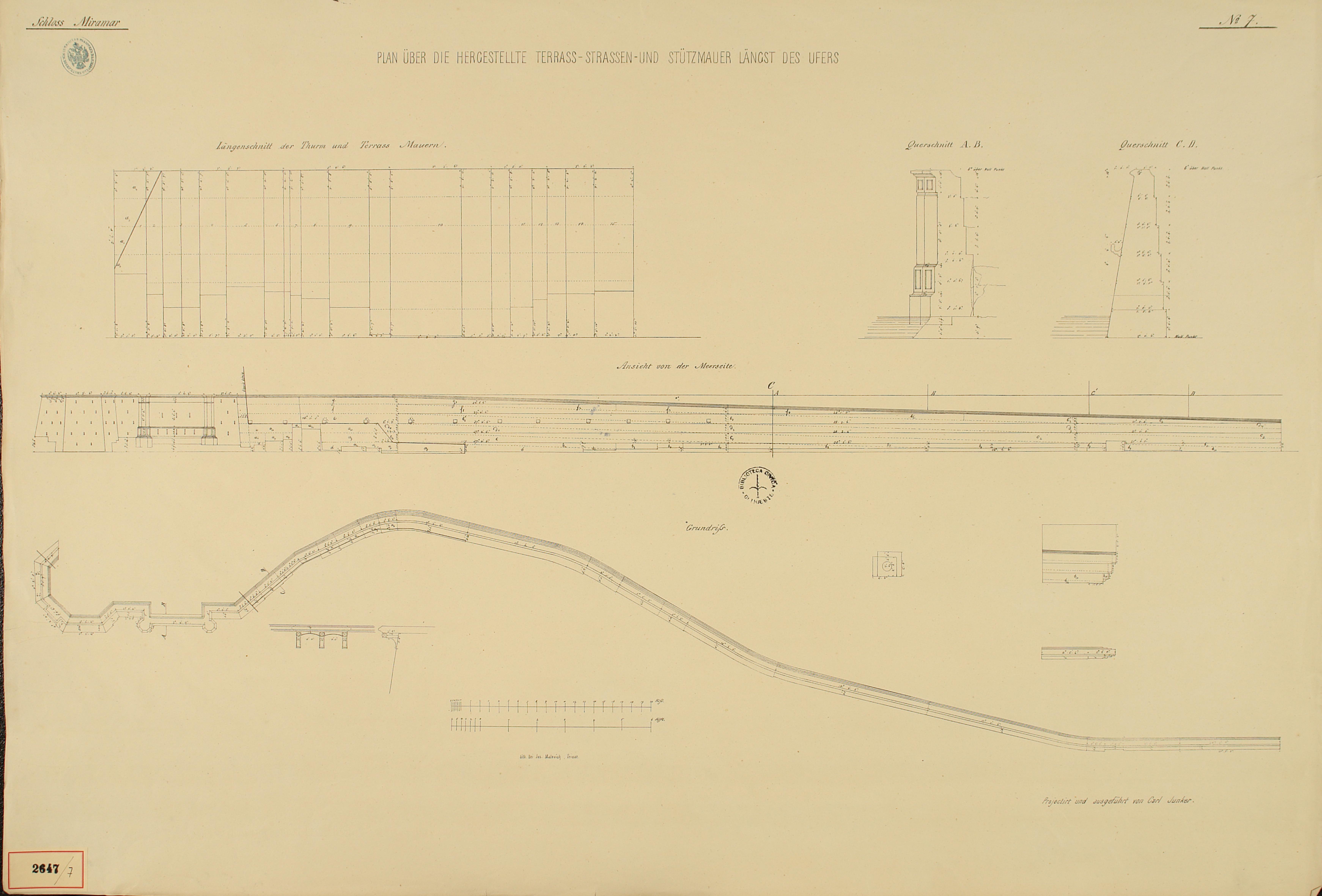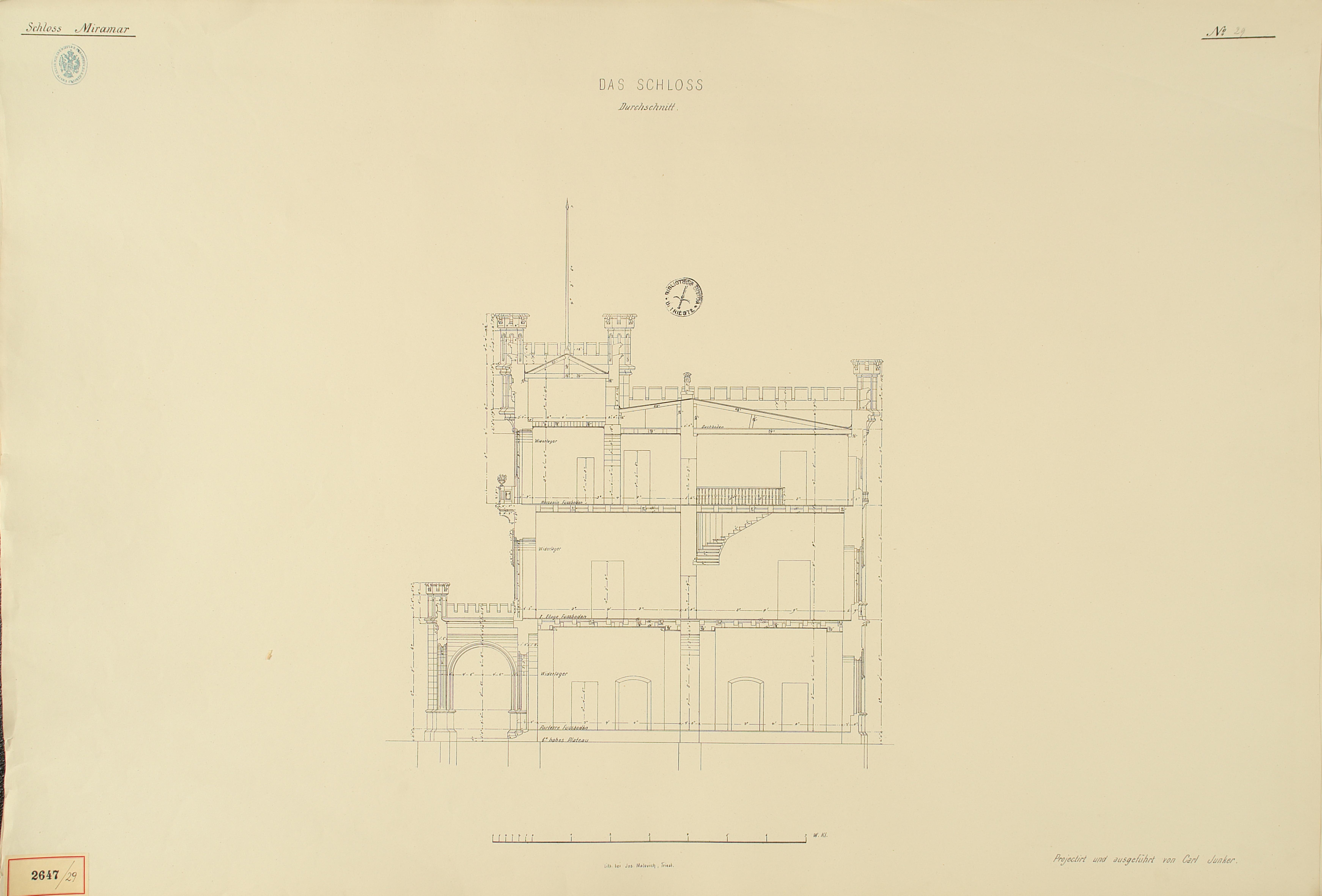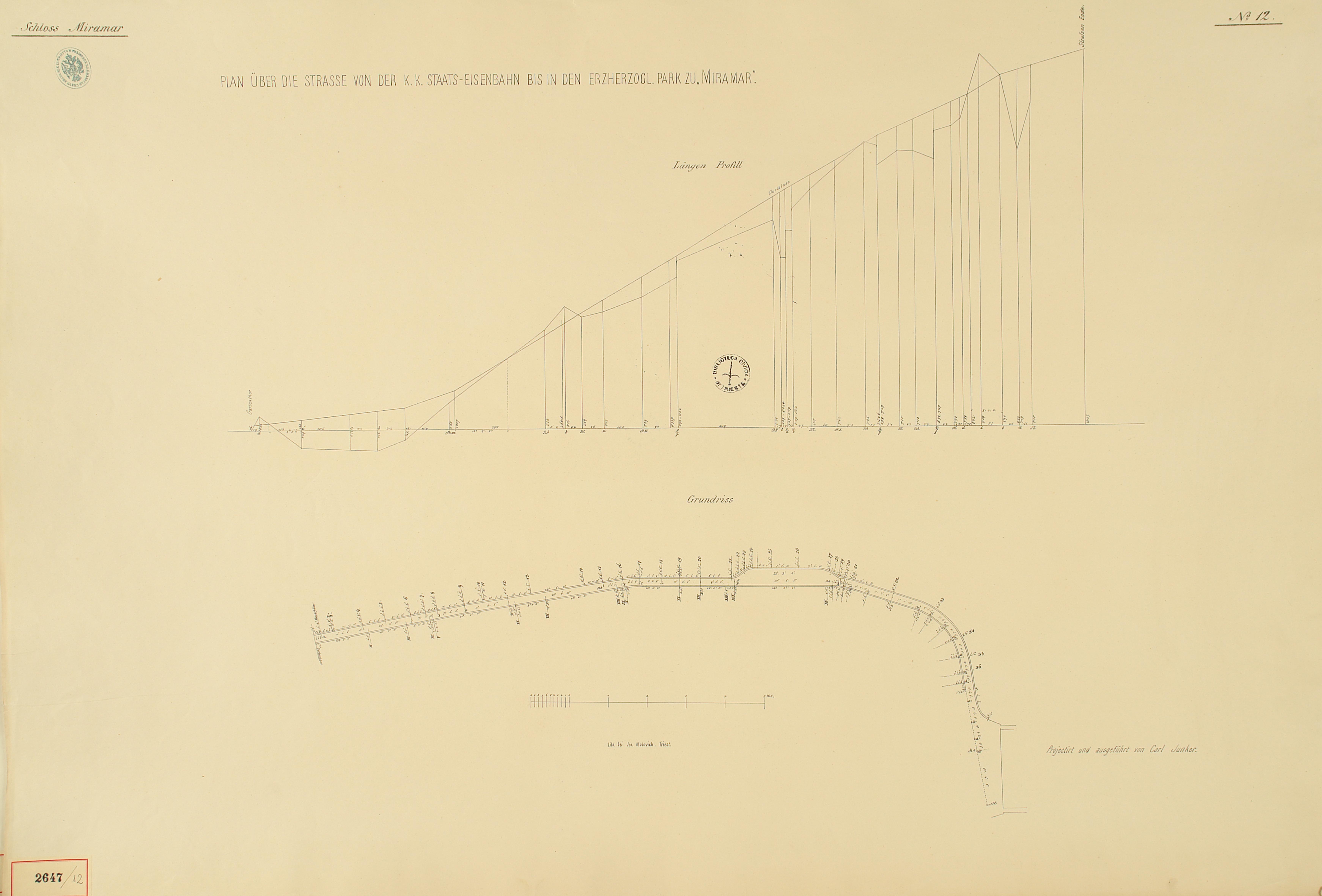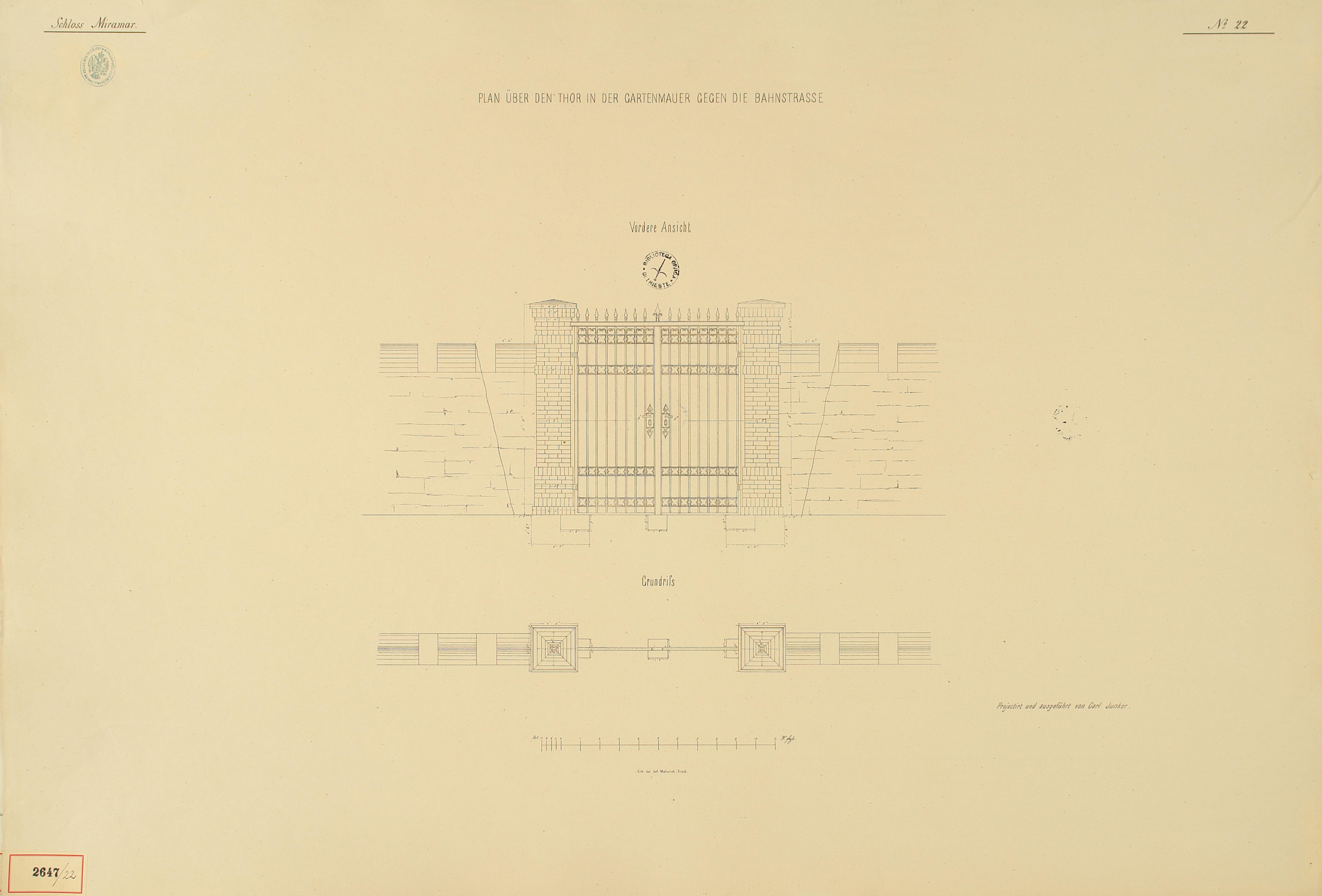 *Schloss Miramar : Im hohen Auftrage seiner k. k. Hoheit des durchlauchtigsten Herrn Erzherzogs Ferdinand Max / Im Zeitraume vom 1. März 1856 bis 27. July 1860, projectirt und ausgeführt von Carl Junker. - Trieste : lith. bei Jos. Malovich, 1856-1860. - 54 tav., 1 pianta e 1 frontespizio : lit. ; 61x90 cm le tav. e 103x142 cm la pianta. ((Tit. della pianta: Situation der Bau- und Garten-Anlagen in Miramar.