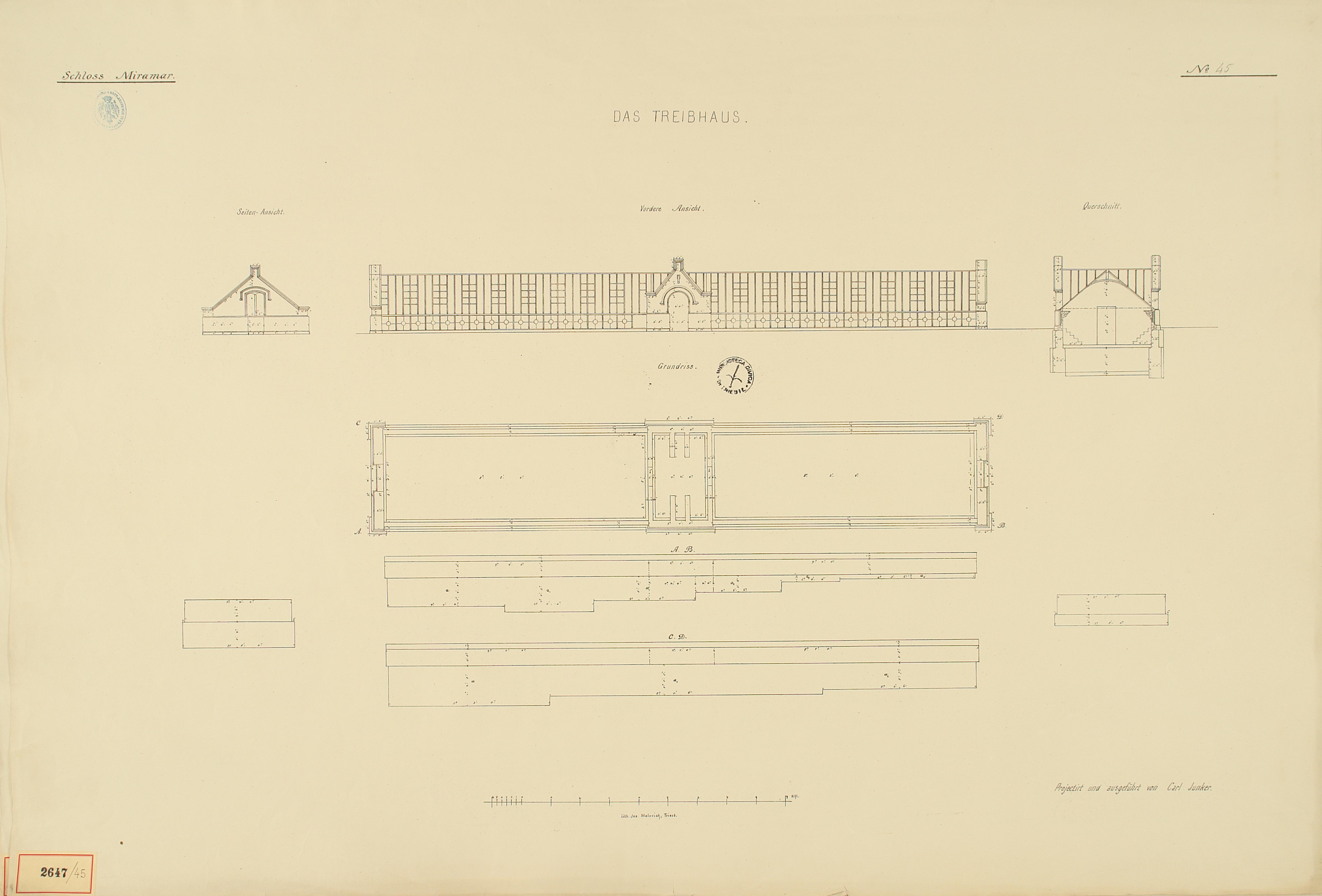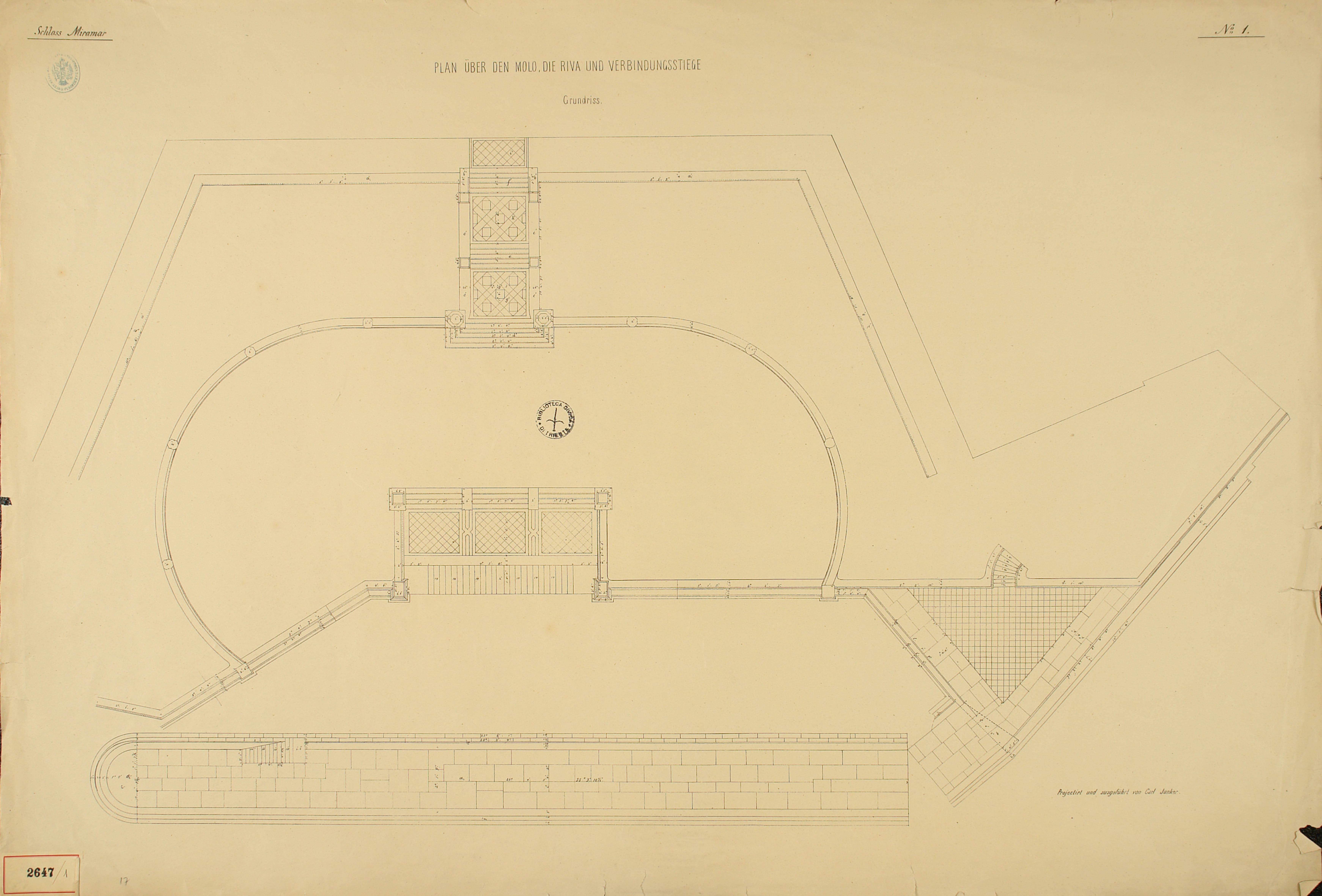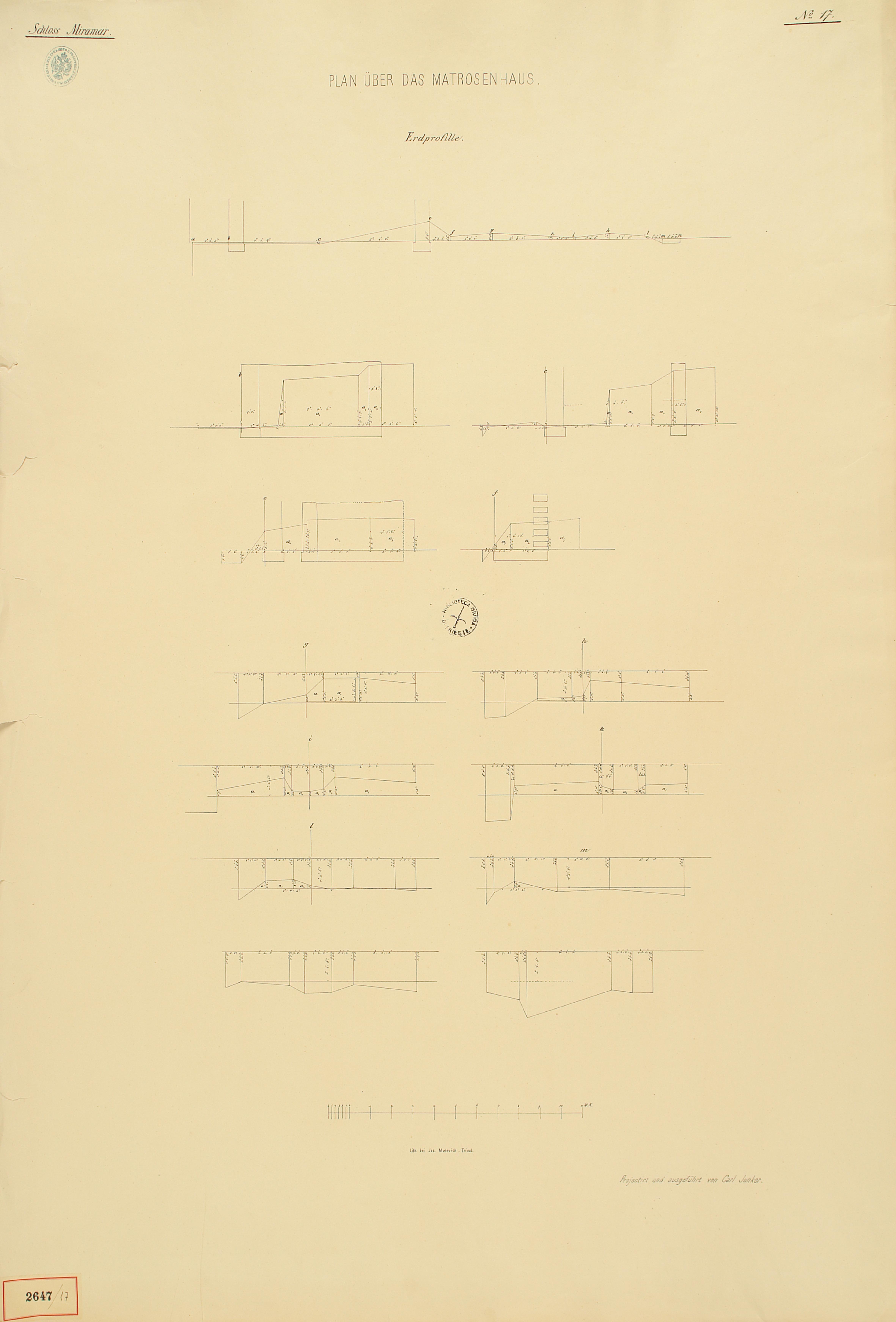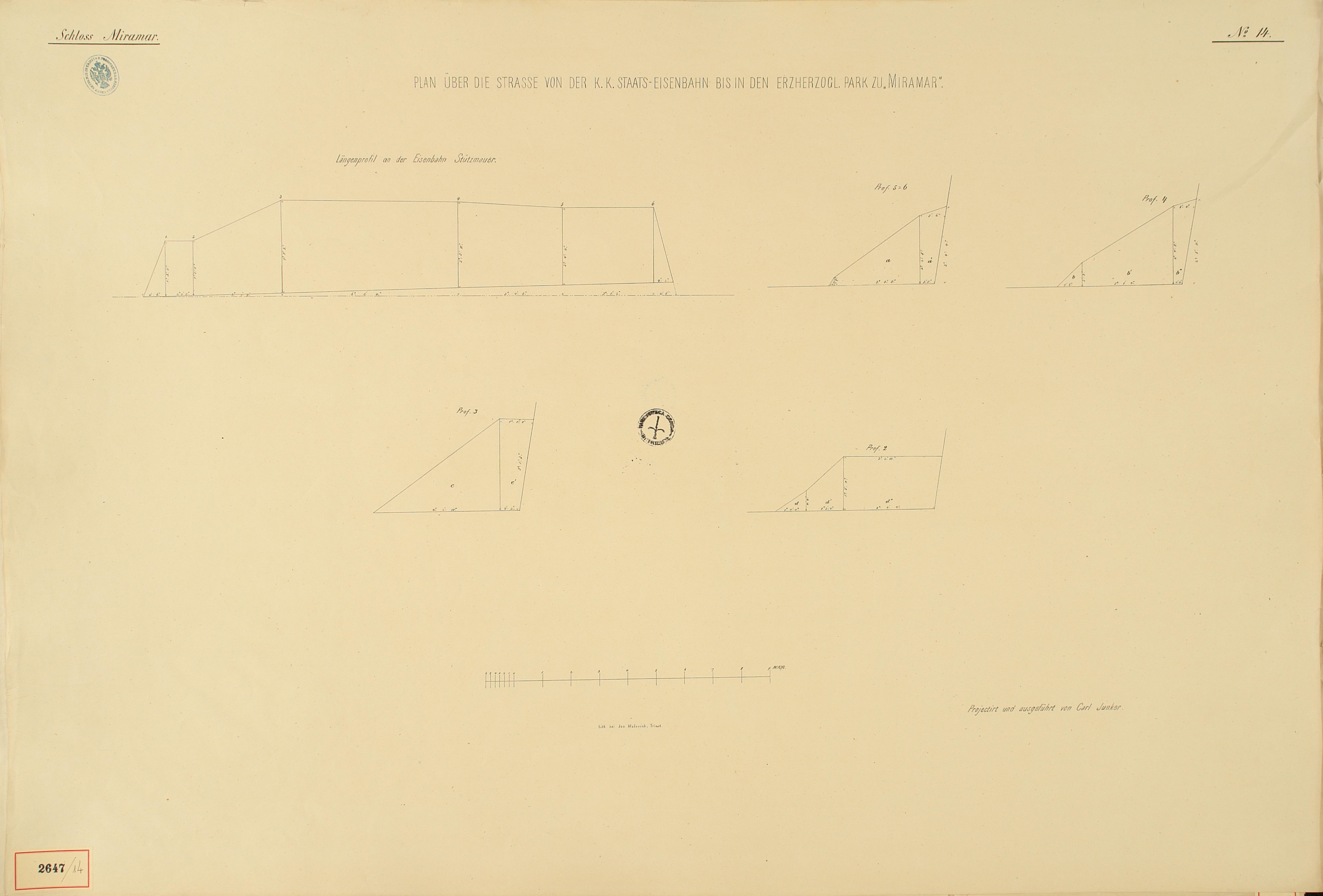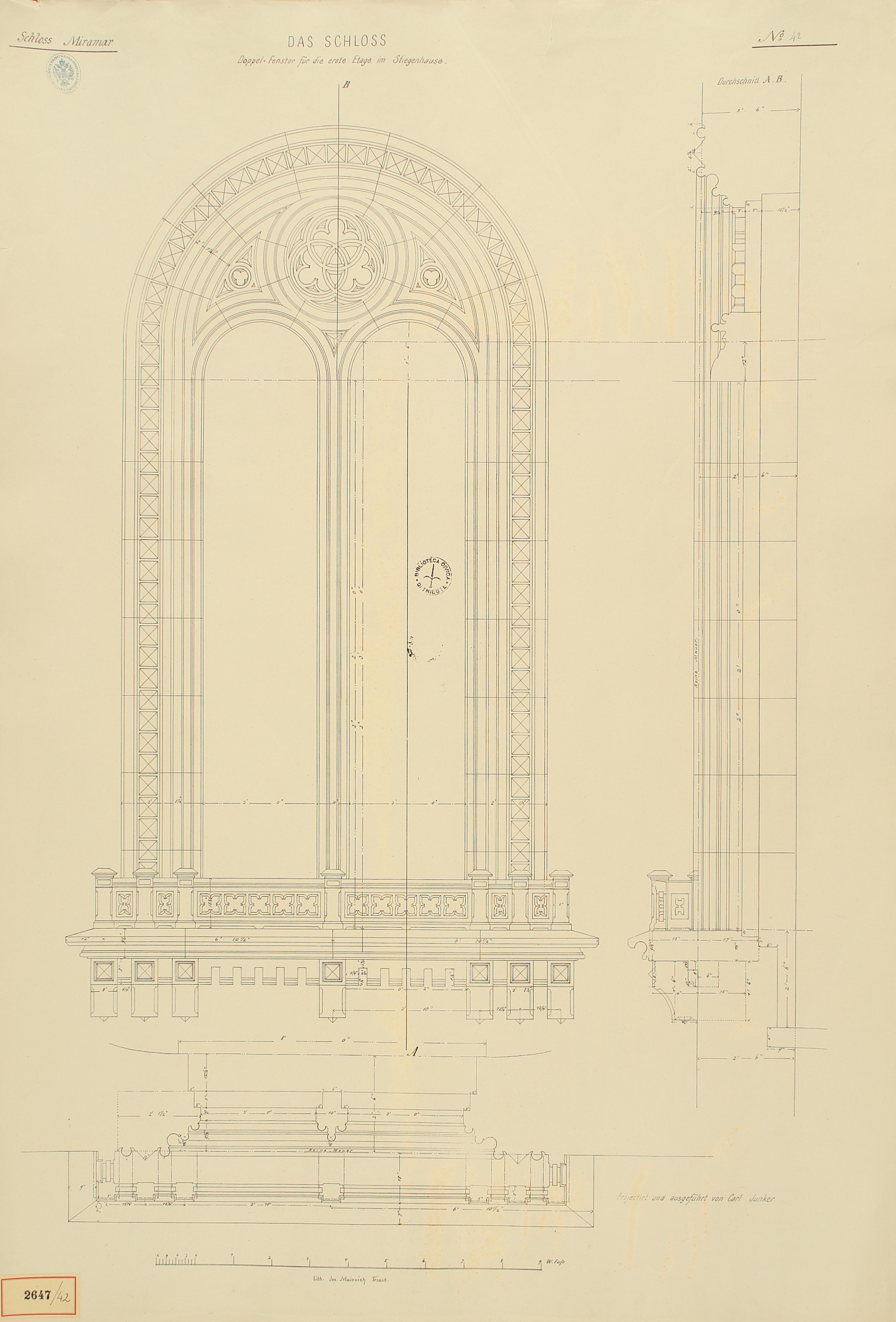 *Schloss Miramar : Im hohen Auftrage seiner k. k. Hoheit des durchlauchtigsten Herrn Erzherzogs Ferdinand Max / Im Zeitraume vom 1. März 1856 bis 27. July 1860, projectirt und ausgeführt von Carl Junker. - Trieste : lith. bei Jos. Malovich, 1856-1860. - 54 tav., 1 pianta e 1 frontespizio : lit. ; 61x90 cm le tav. e 103x142 cm la pianta. ((Tit. della pianta: Situation der Bau- und Garten-Anlagen in Miramar.
