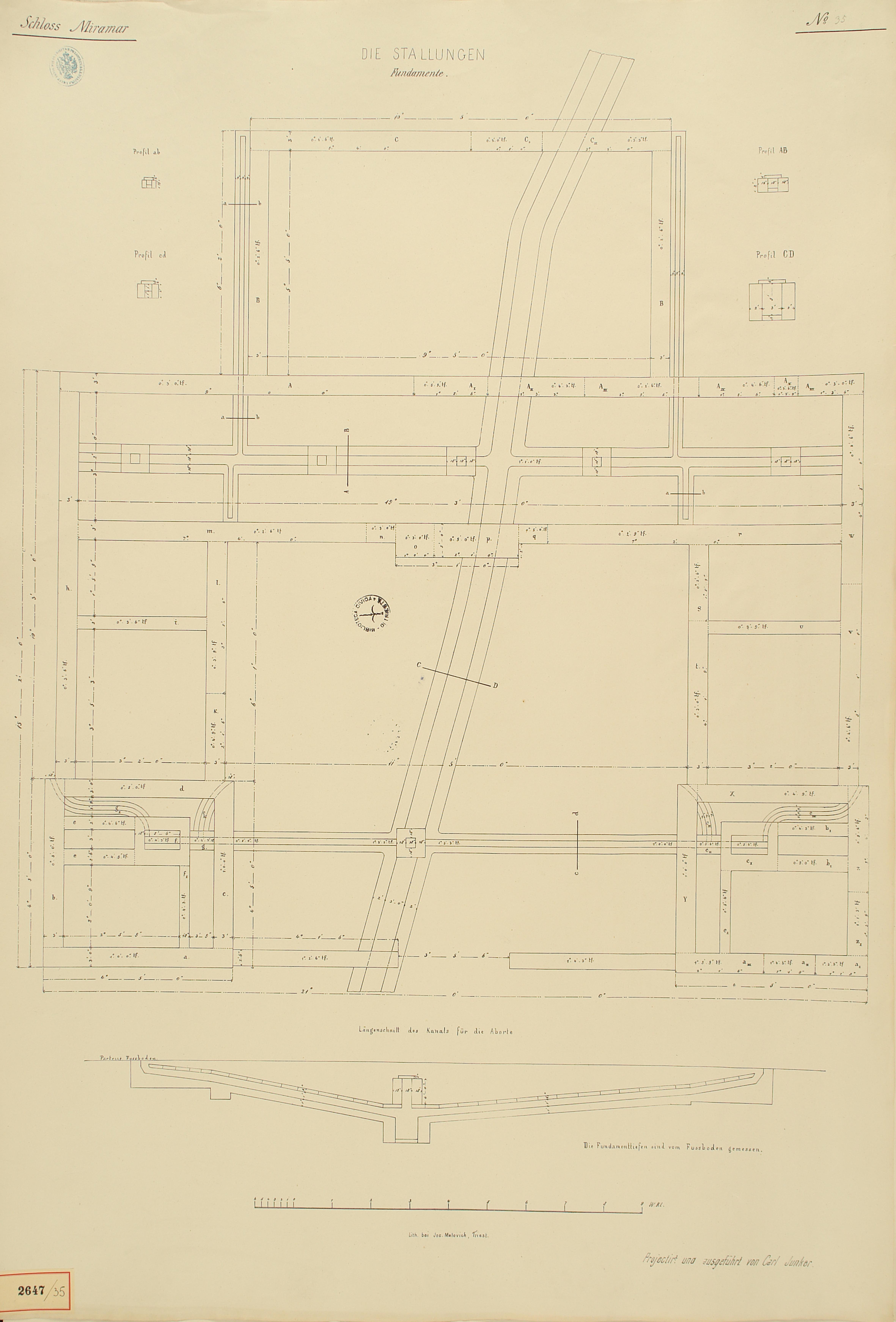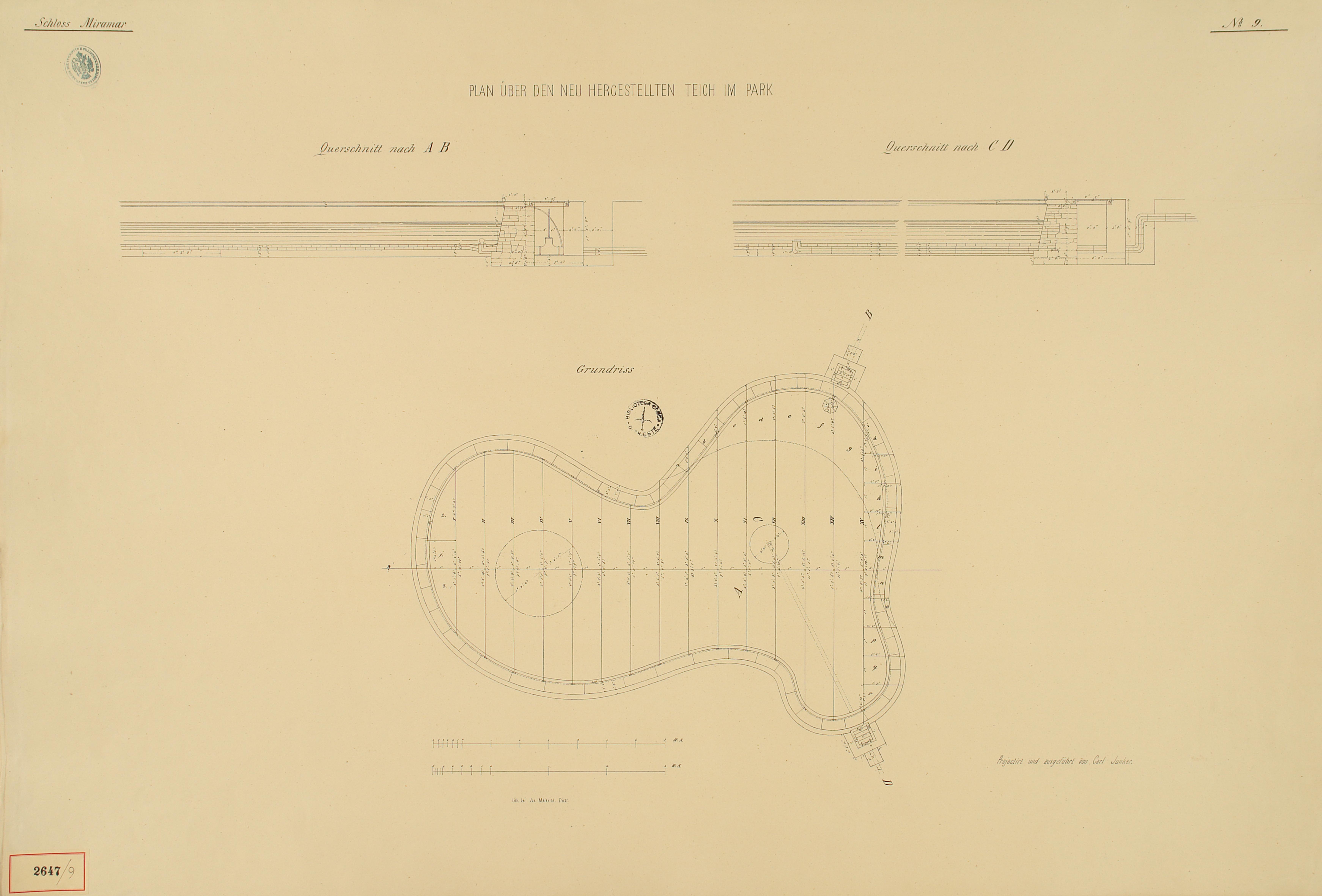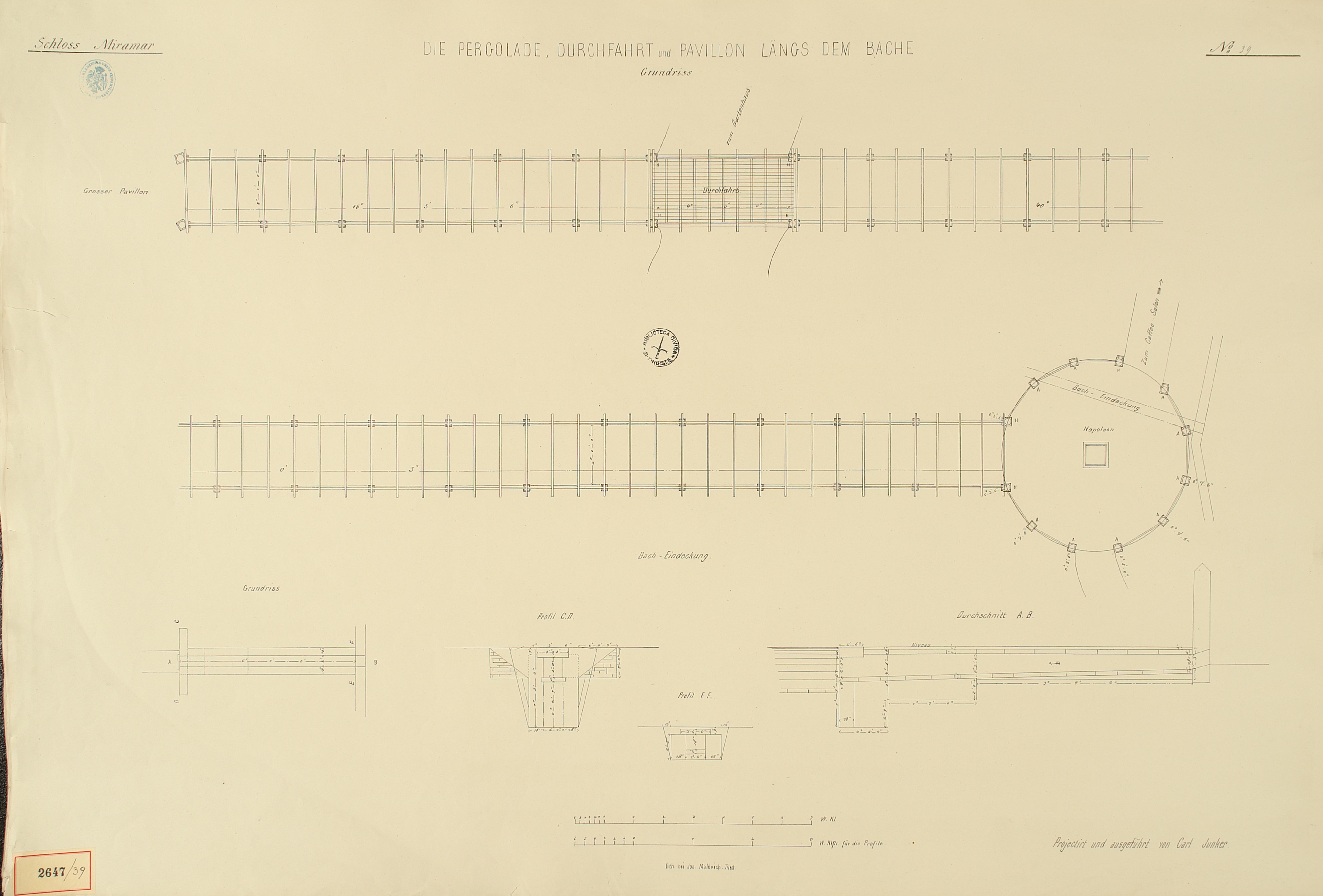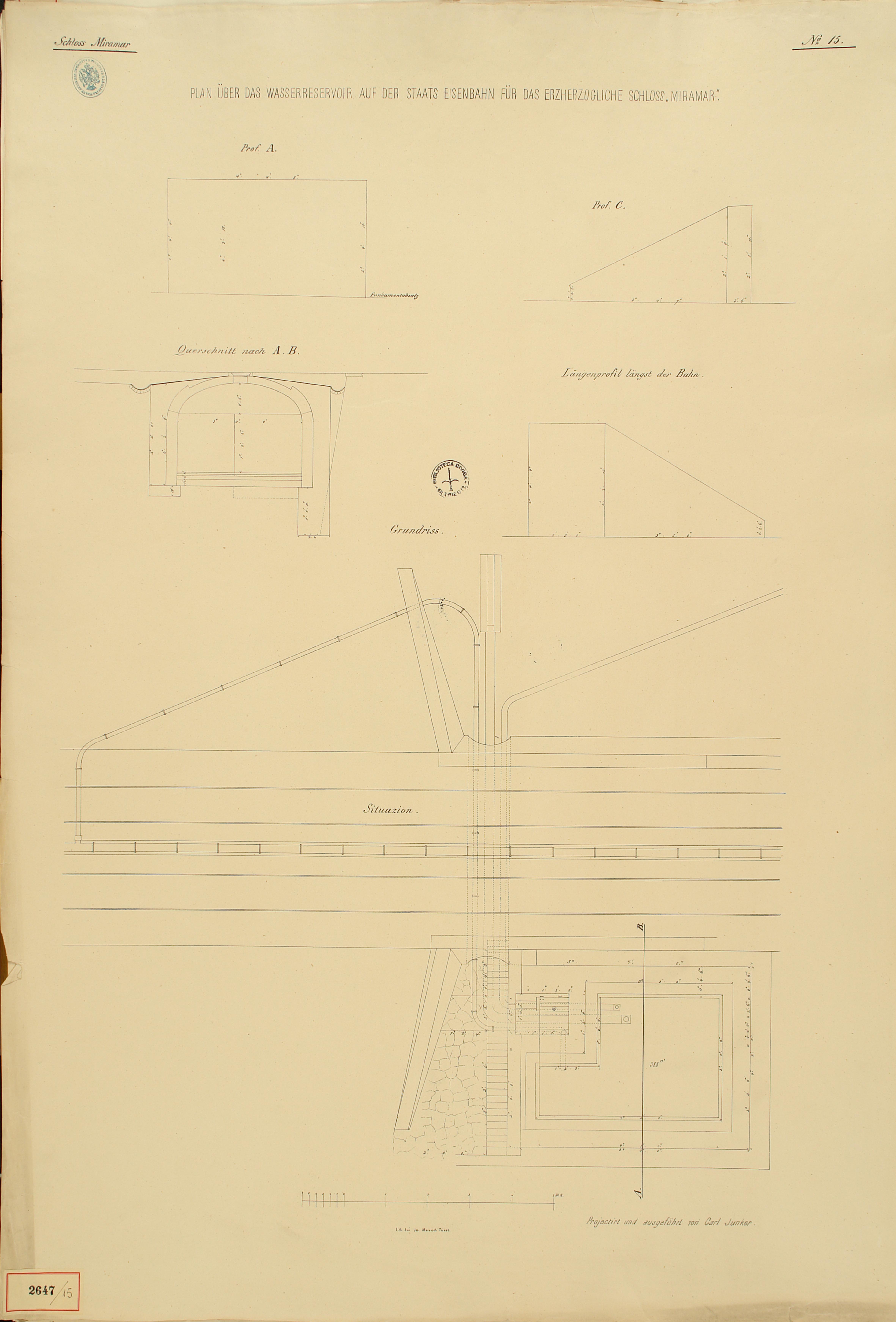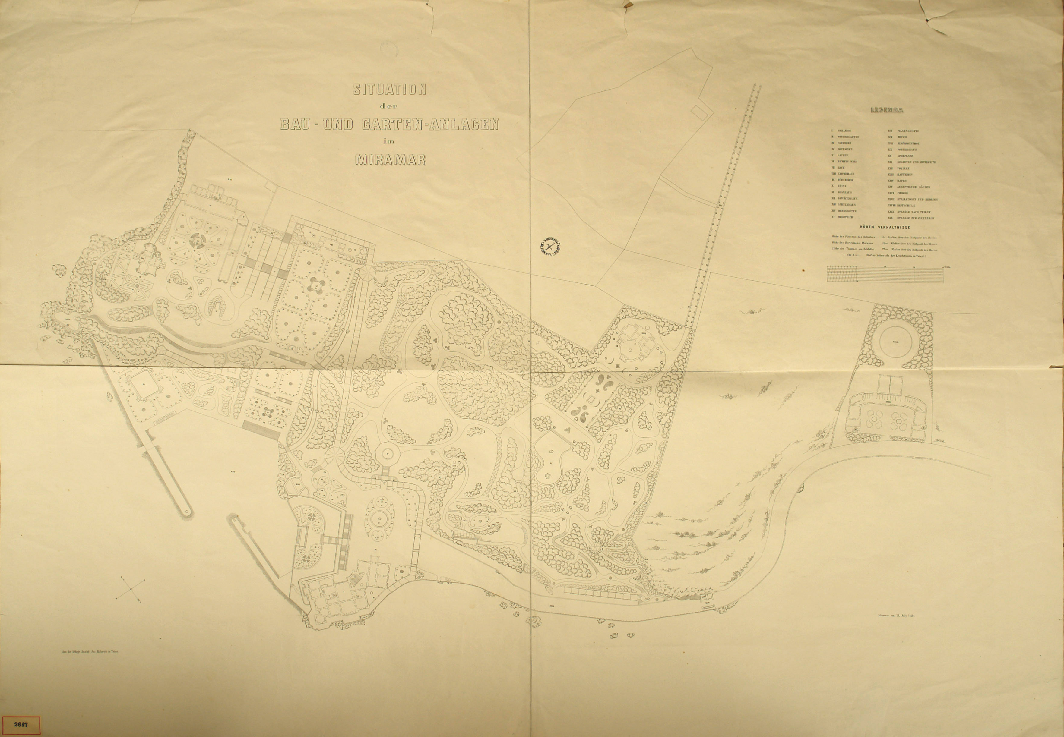 *Schloss Miramar : Im hohen Auftrage seiner k. k. Hoheit des durchlauchtigsten Herrn Erzherzogs Ferdinand Max / Im Zeitraume vom 1. März 1856 bis 27. July 1860, projectirt und ausgeführt von Carl Junker. - Trieste : lith. bei Jos. Malovich, 1856-1860. - 54 tav., 1 pianta e 1 frontespizio : lit. ; 61x90 cm le tav. e 103x142 cm la pianta. ((Tit. della pianta: Situation der Bau- und Garten-Anlagen in Miramar.