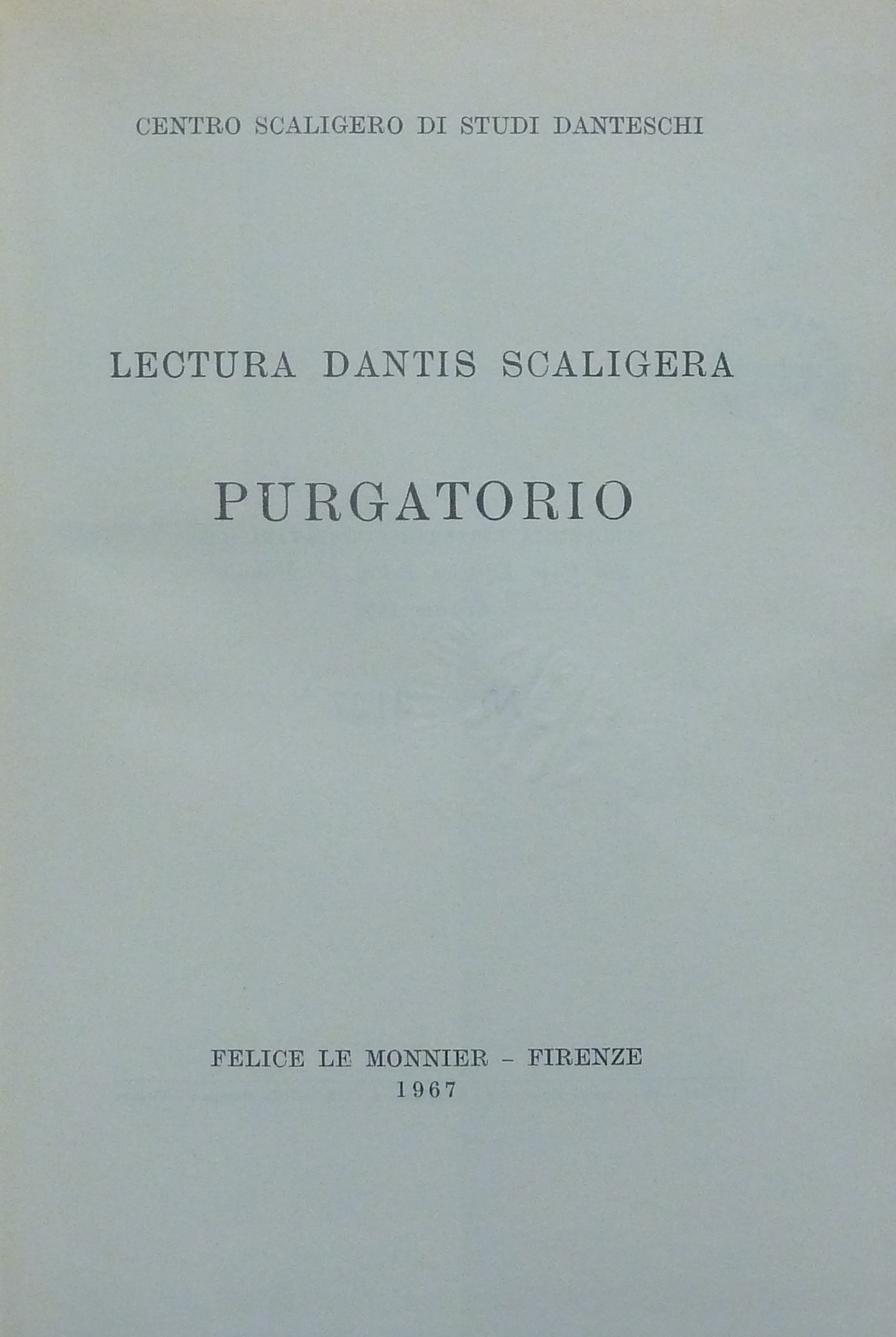 *Purgatorio. - Firenze : F. Le Monnier, 1967. - 1240 p. ; 21 cm. ((In testa al front.: Centro scaligero di studi danteschi.