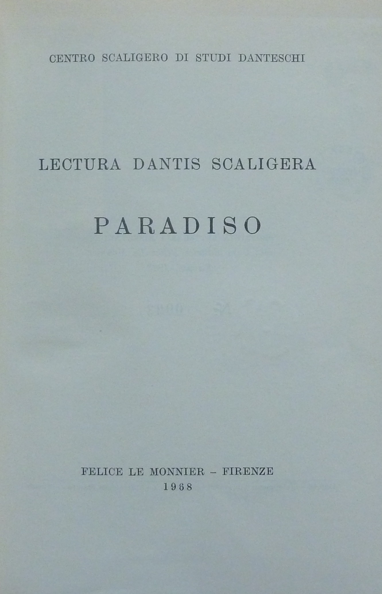 *Paradiso. - Firenze : F. Le Monnier, 1968. - 1330 p. ; 21 cm. ((In testa al front.: Centro scaligero di studi danteschi.